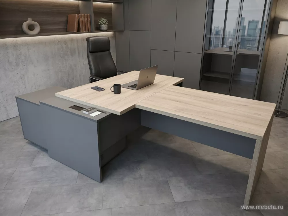 Кабинет руководителя Кортез / Kortez Light в светлом оттенке Кронберг может быть оснащен различными элементами декора, такими как картины, фотографии, растения и т.д. Это поможет создать уникальный и индивидуальный интерьер.