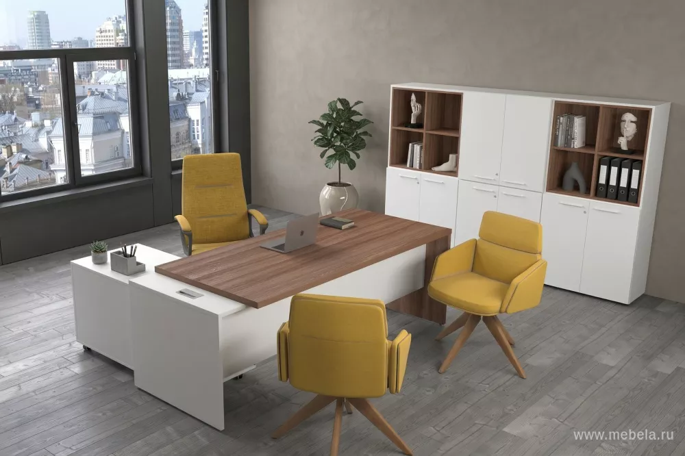 Кабинет для руководителя Кортез (Kortez) в цвете тёмный шимо - это не только рабочее пространство, но и место, где можно провести время с коллегами и партнерами. Он должен быть стильным, уютным и функциональным. В кабинете для руководителя должны быть удобные кресла, стол, шкафы для документов и другие необходимые предметы.
