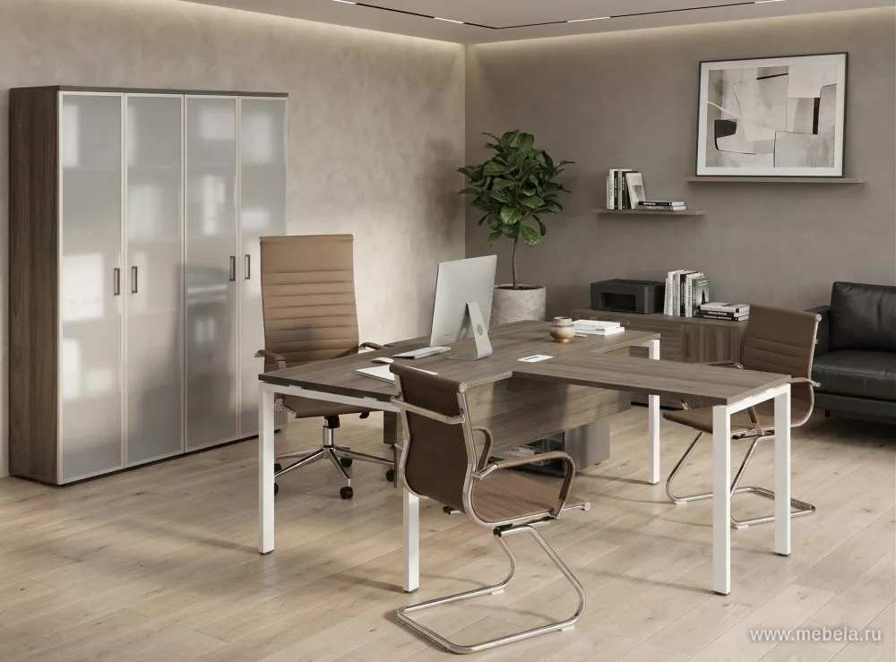 Кабинет руководителя Стайл Проджект Вяз — современное решение российского производства. Прочный металлокаркас прямой и обратной трапеции, ЛДСП в цвете вяз благородный, элегантные опоры и широкий выбор оттенков создают стильный и надежный офис для деловых лидеров.