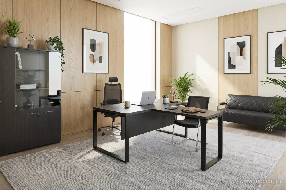 Мебельным дизайнерам удалось создать кабинеты руководителя в минималистическом стиле, сделав его при этом невероятно оригинальным. Всего-навсего одно решение придала неповторимый стиль каждому элементу этой коллекции – необычная форма опор для столов и журнальных столиков.