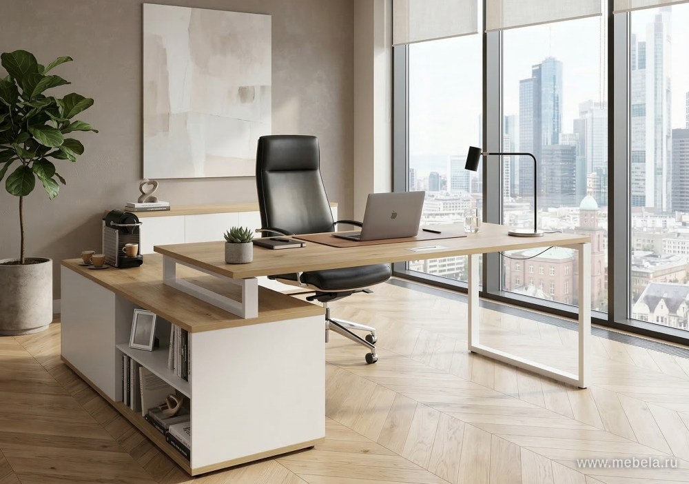 Наполненный светом, теплом привлекательной структуры тикового дерева, оттененный строгостью металлических элементов, кабинет руководителя Шифт притягивает взгляд и поражает продуманной эргономичностью. Качественные материалы, функциональные модули в стиле хай-тек создают современное рабочее пространство.