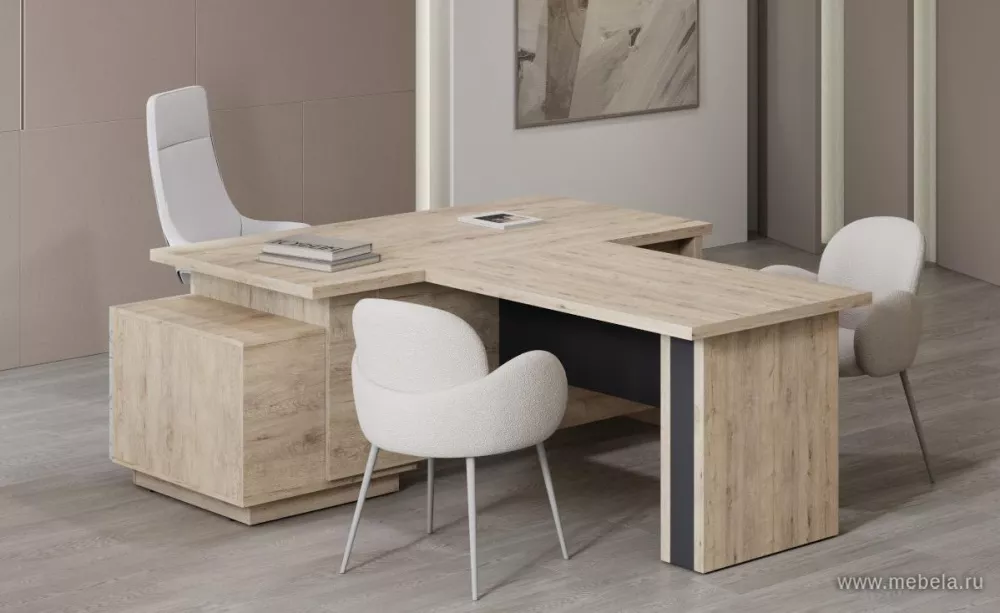 Кабинет руководителя «Тоскана» — это сочетание статуса, надежности и современного дизайна. Мебель выполнена в благородном цвете Дуб бонифаций, который подчеркивает деловой стиль интерьера. Столешницы и боковины столов толщиной 38 мм обеспечивают прочность и солидный внешний вид, а усил...