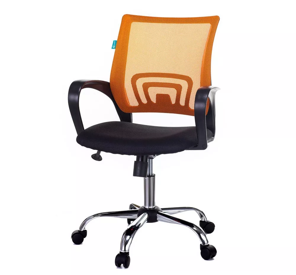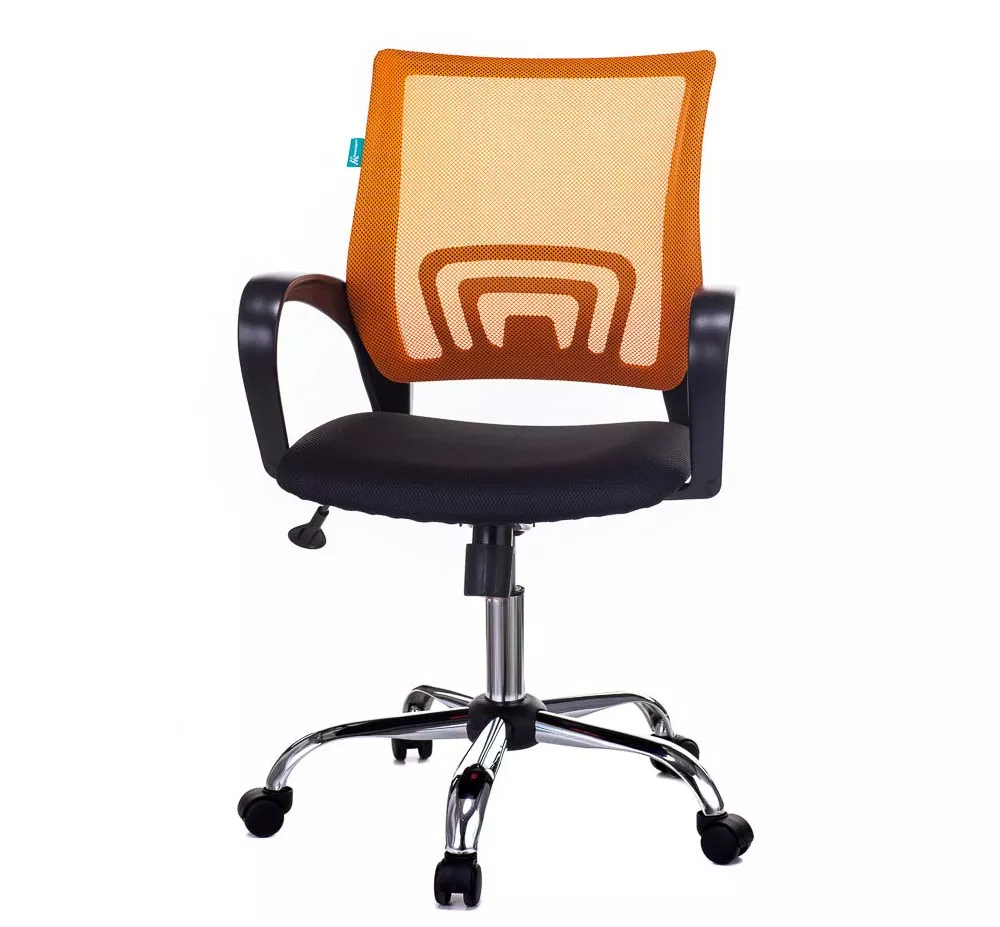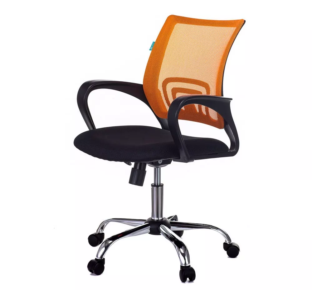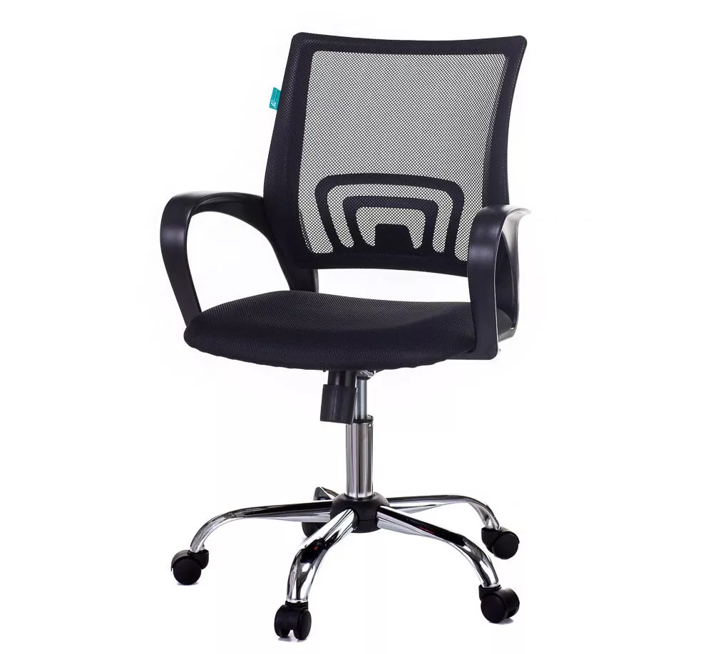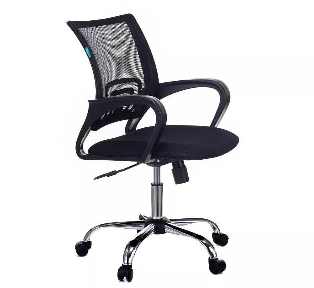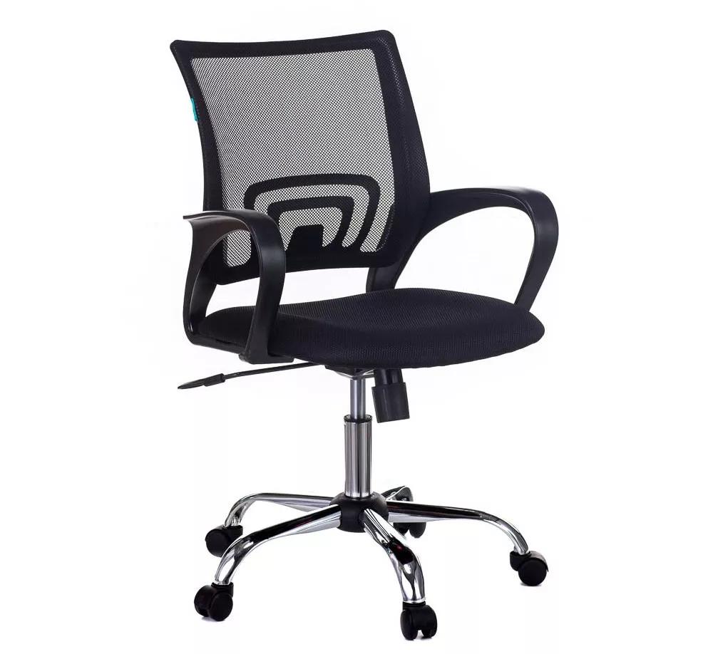 Хромированные элементы кресла выглядят стильно в любом интерьере. Для обивки сидения использована ткань, устойчивая к растяжению, истиранию. В лаконичный дизайн изделия прекрасно вписываются пластиковые подлокотники, которые будут очень удобными для владельца кресла. Хромированная пятилучевая крестовина с поворотными колесиками делает