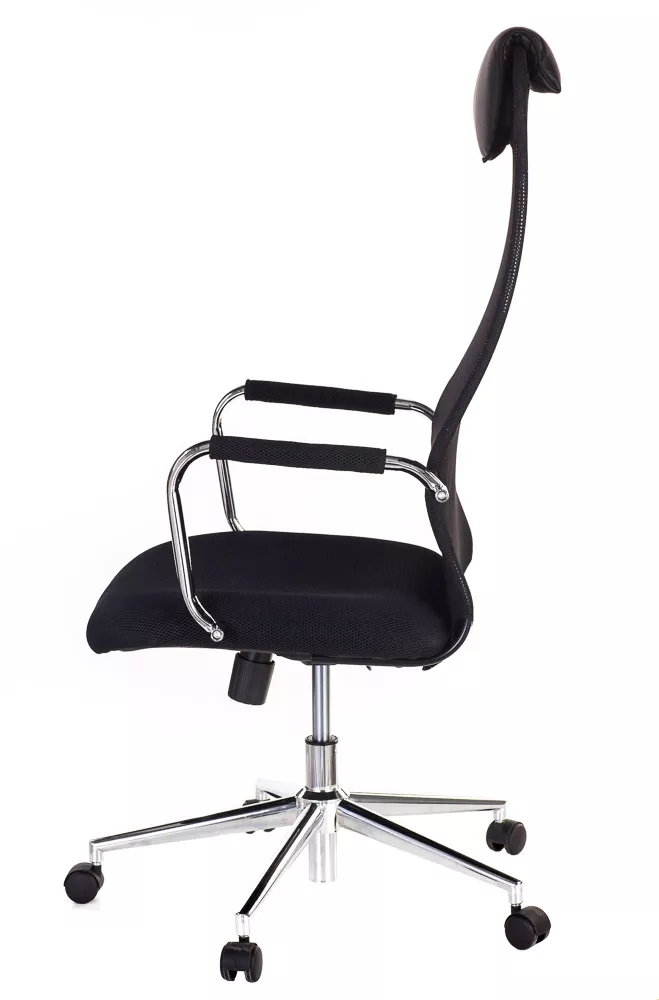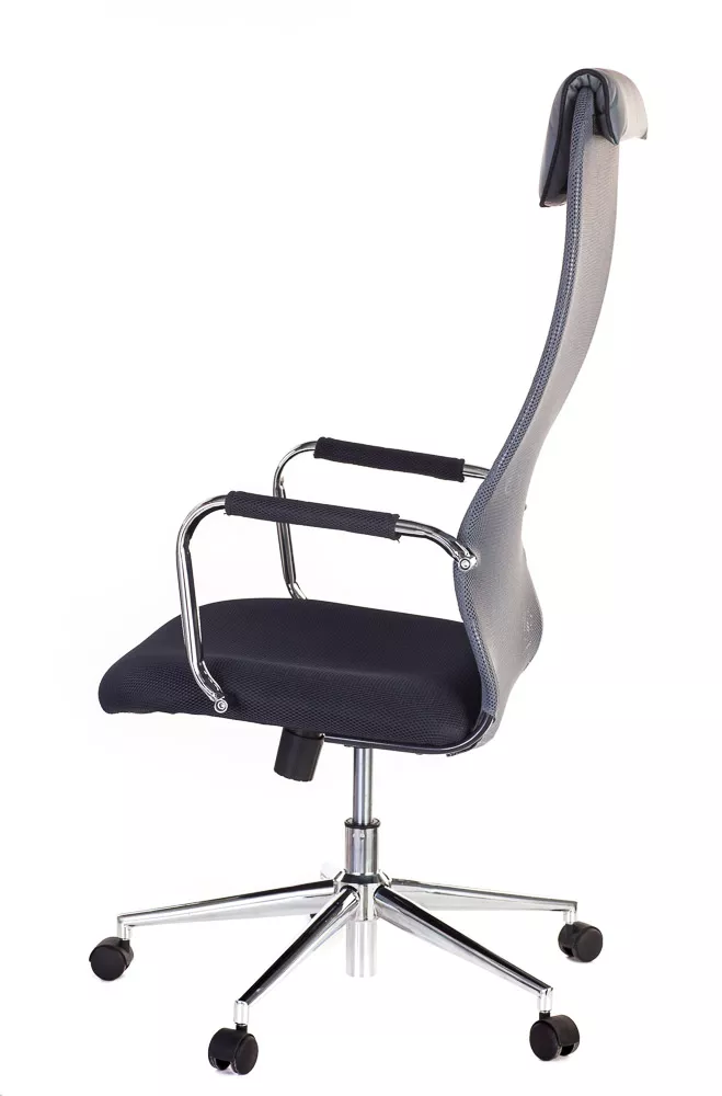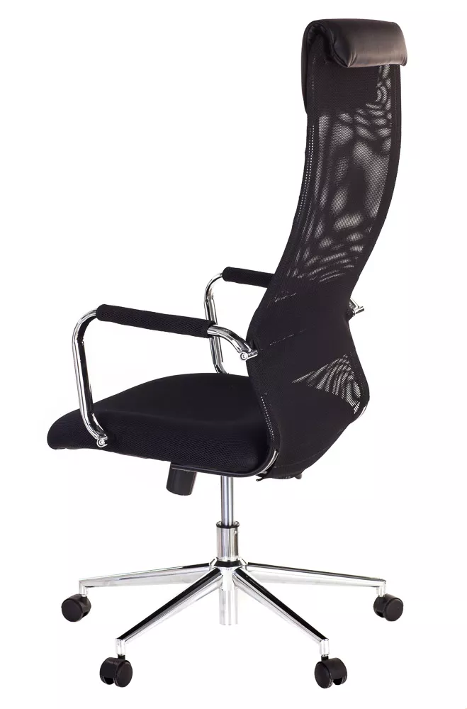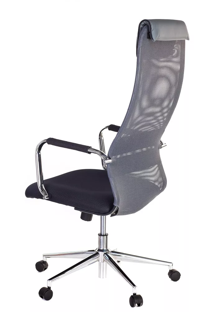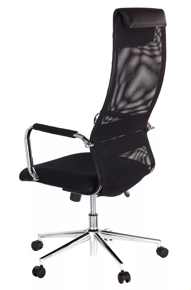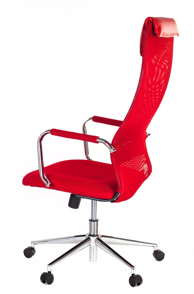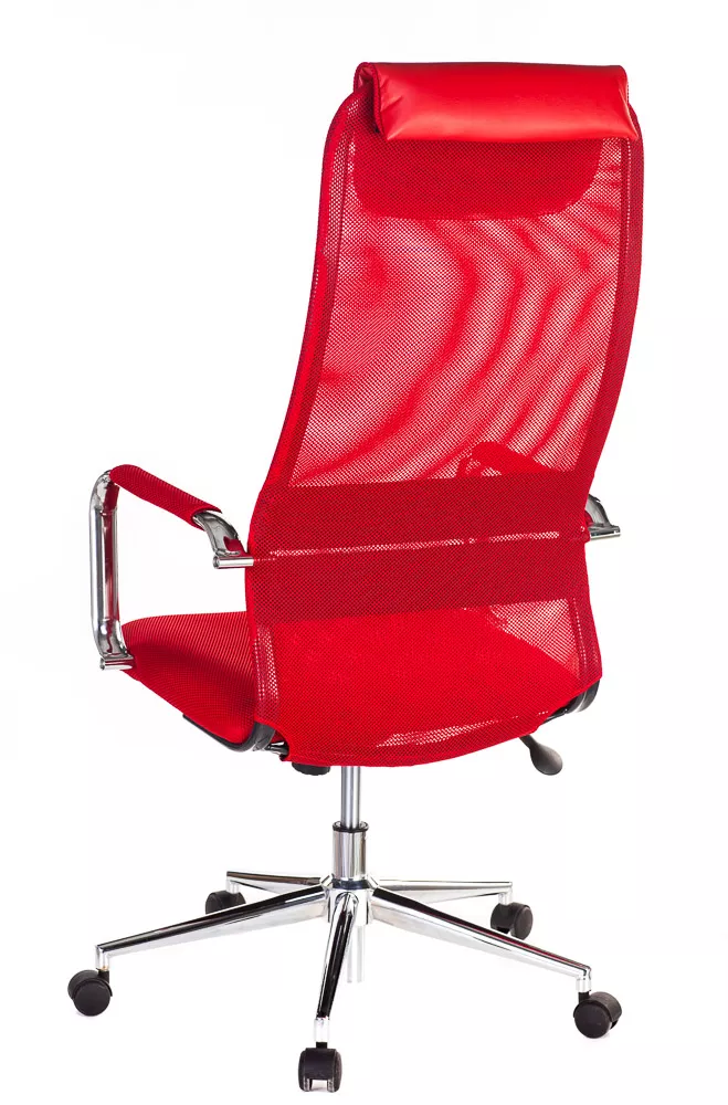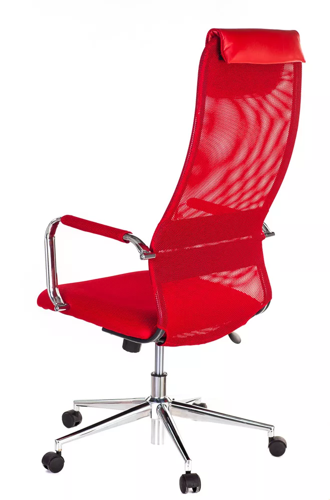 Изящное кресло с необычным изгибом спинки. Вытянутая задняя поверхность с подголовником и горизонтальной полоской по центру выглядит невероятно элегантно. Кресло выполнено из сетчатой ткани, экокожи, сетки и пластика. Представлено в четырех цветах: черном, сером, красном и синем. Все четыре модели выглядят ярко.