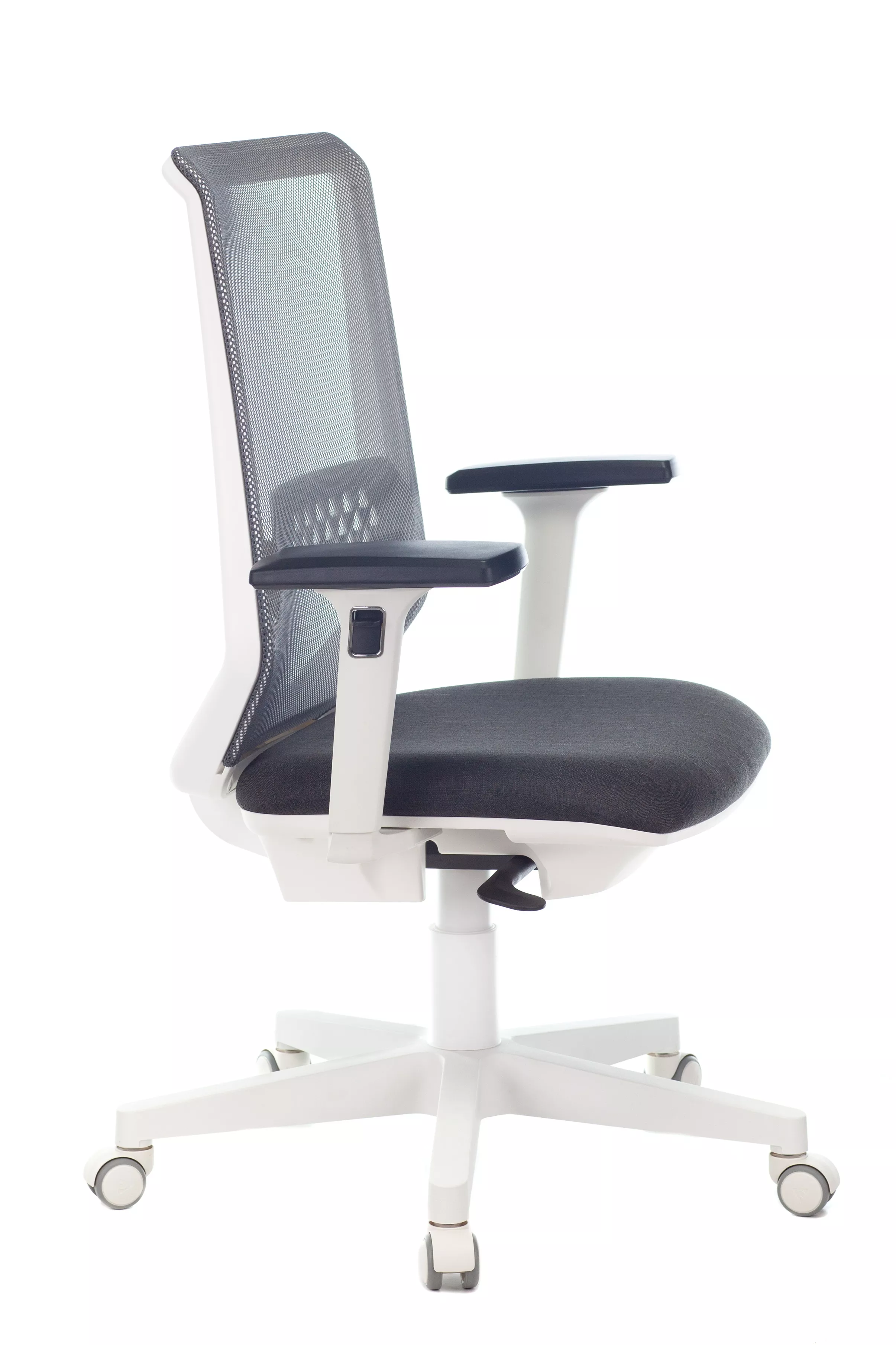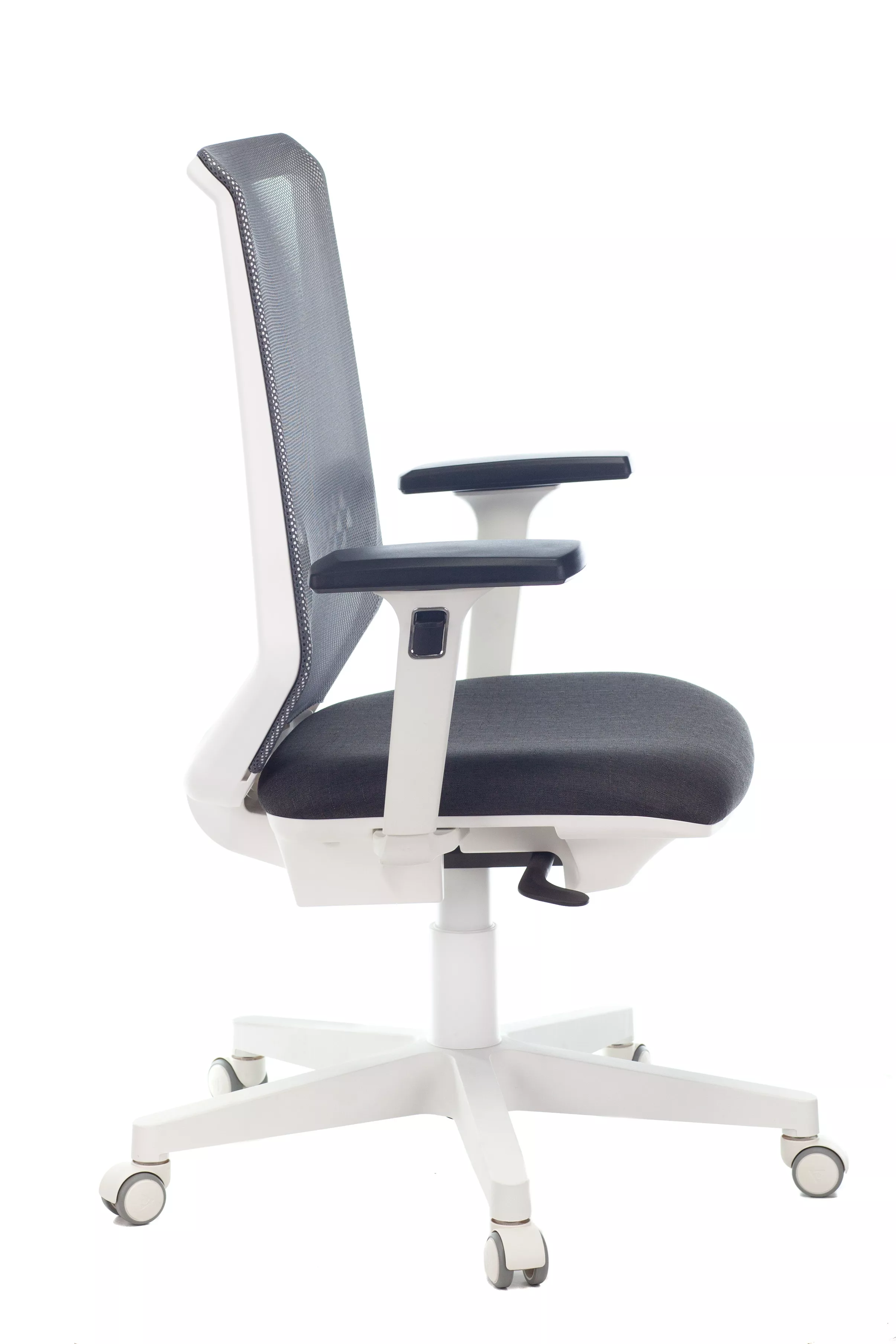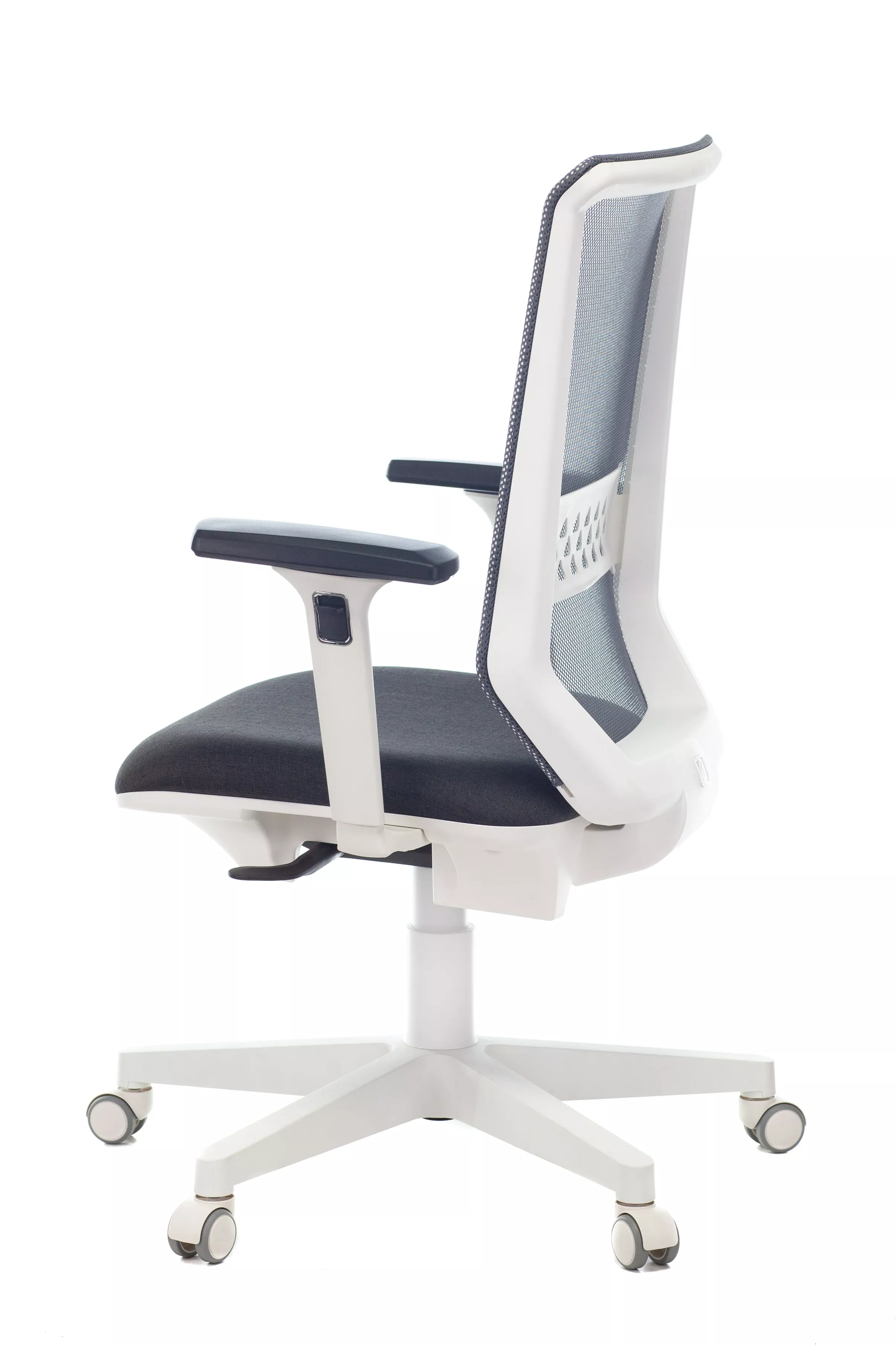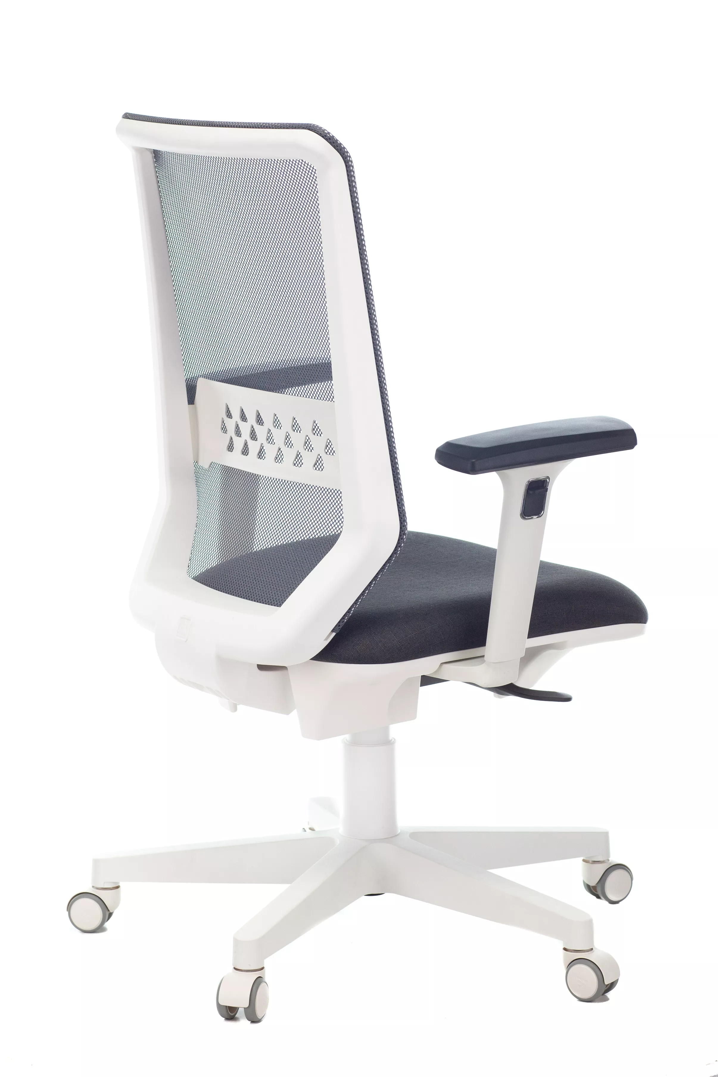 Подлокотники 3D обеспечивают возможность регулировки по высоте, ширине и углу наклона, что дополнительно улучшает эргономику. Высота кресла регулируется с помощью газлифта, что делает его подходящим для пользователей разного роста. Белая пластиковая крестовина придает креслу стильный вид и хорошую устойчивость, а колеса, предназначенные для паркета и ламината, обеспечивают легкость перемещения.
