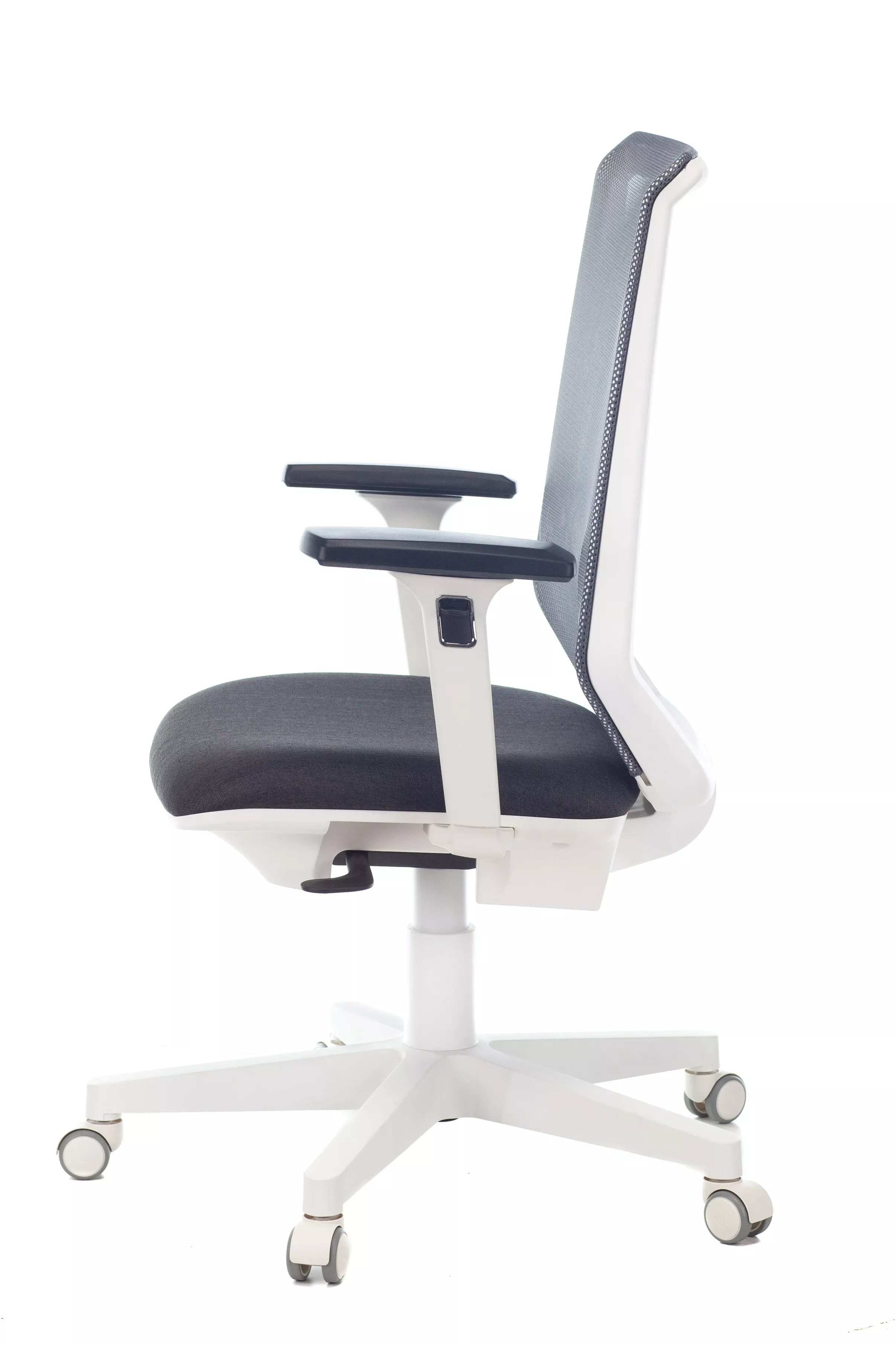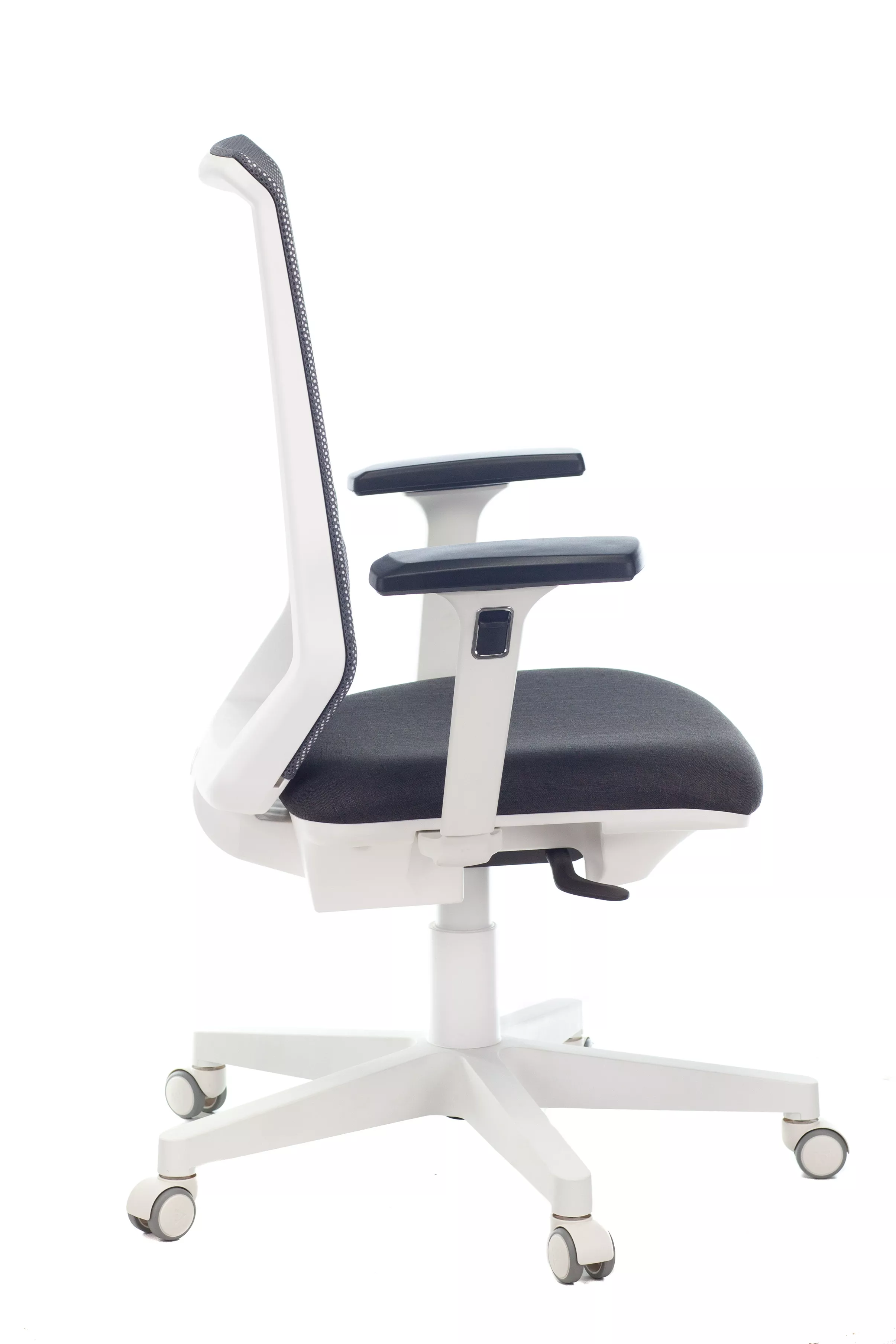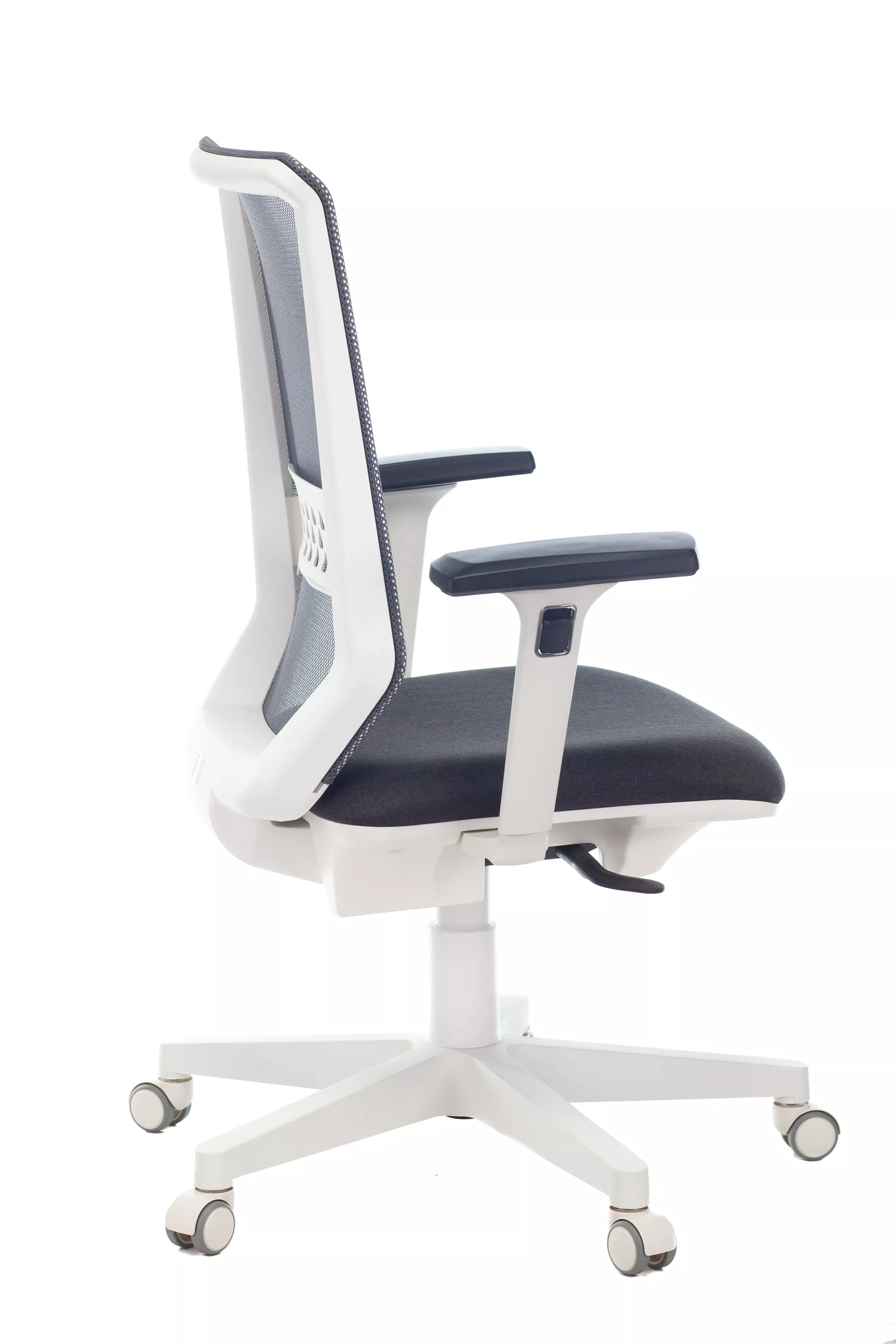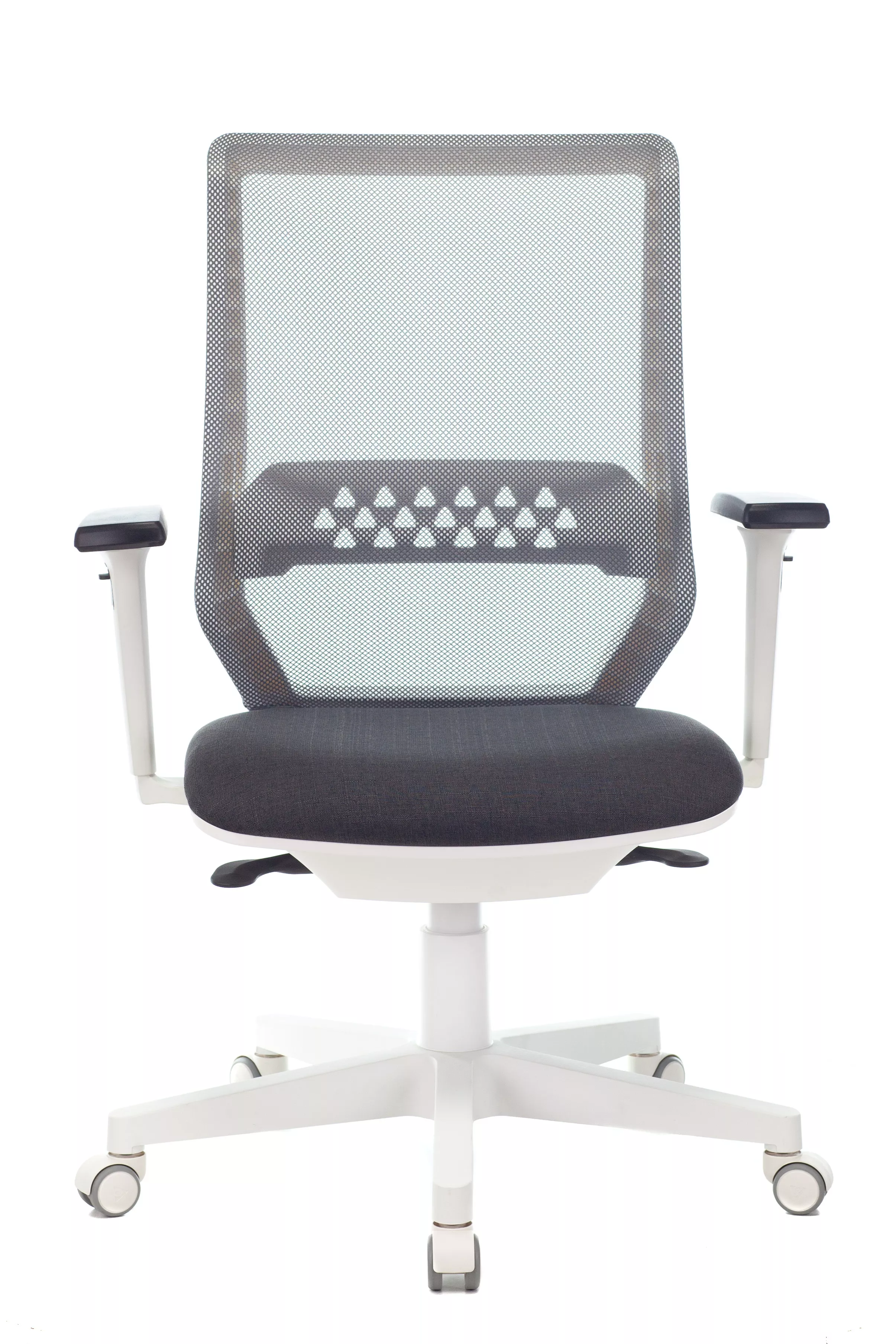Подлокотники 3D обеспечивают возможность регулировки по высоте, ширине и углу наклона, что дополнительно улучшает эргономику. Высота кресла регулируется с помощью газлифта, что делает его подходящим для пользователей разного роста. Белая пластиковая крестовина придает креслу стильный вид и хорошую устойчивость, а колеса, предназначенные для паркета и ламината, обеспечивают легкость перемещения.
