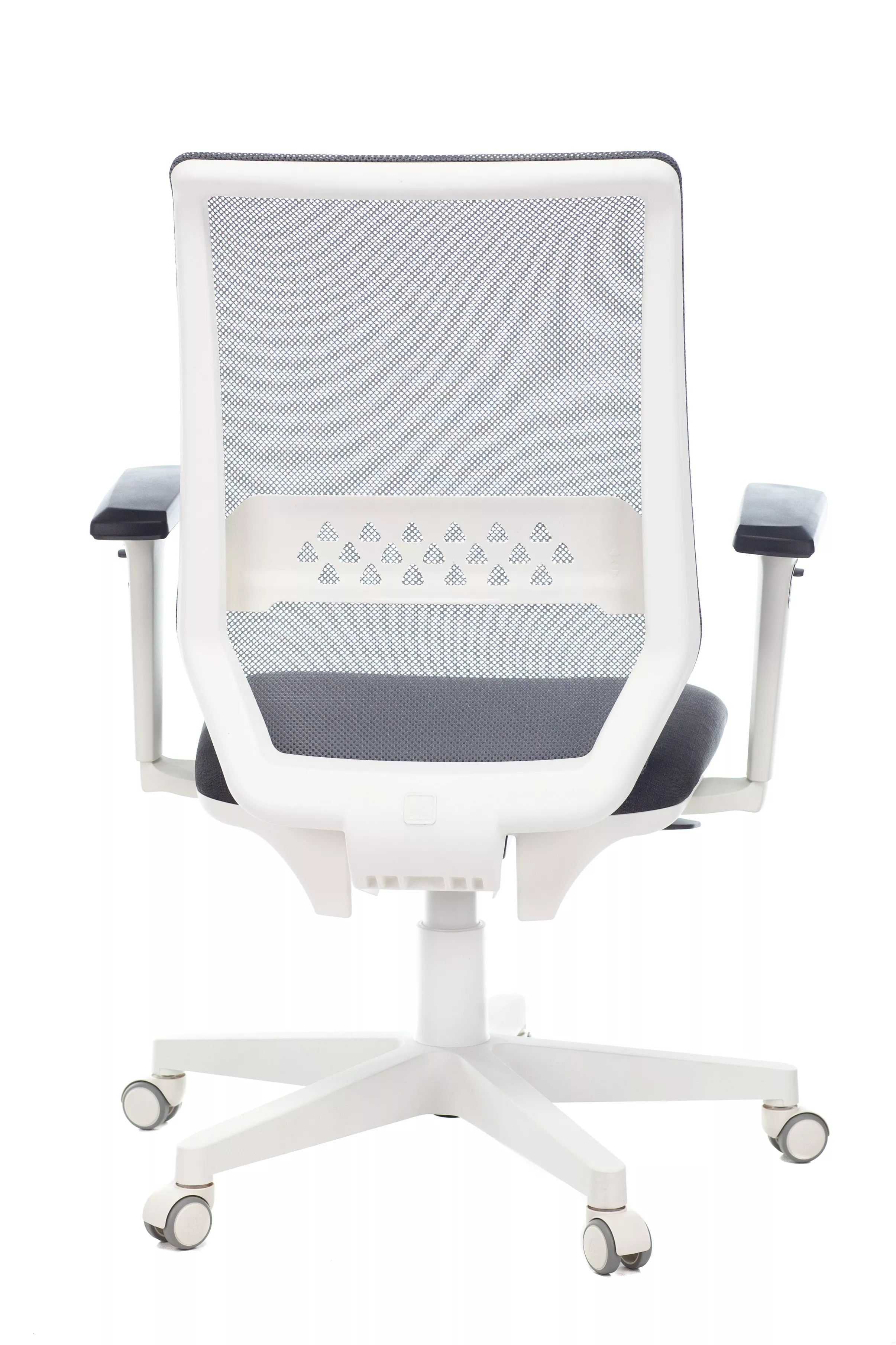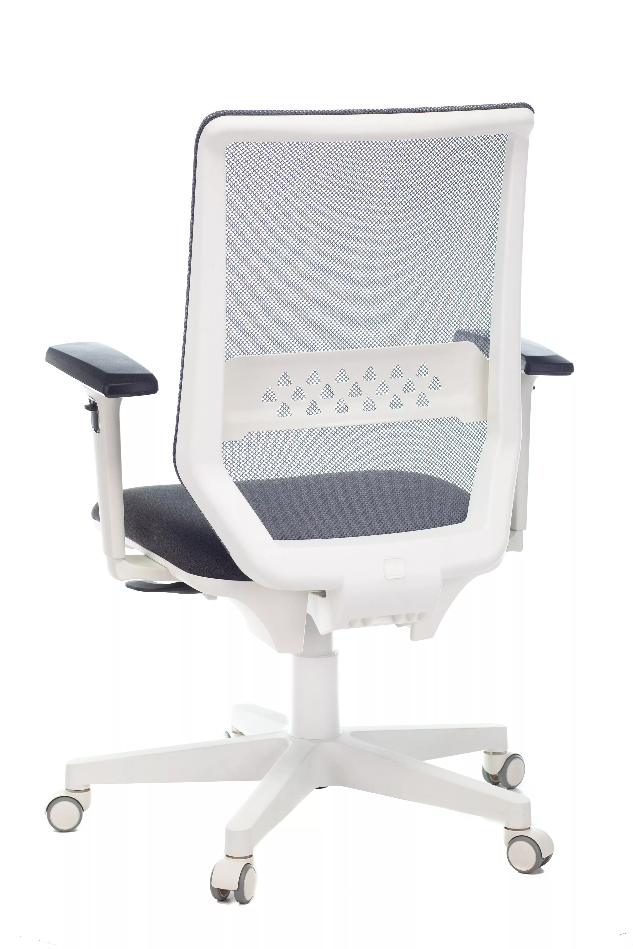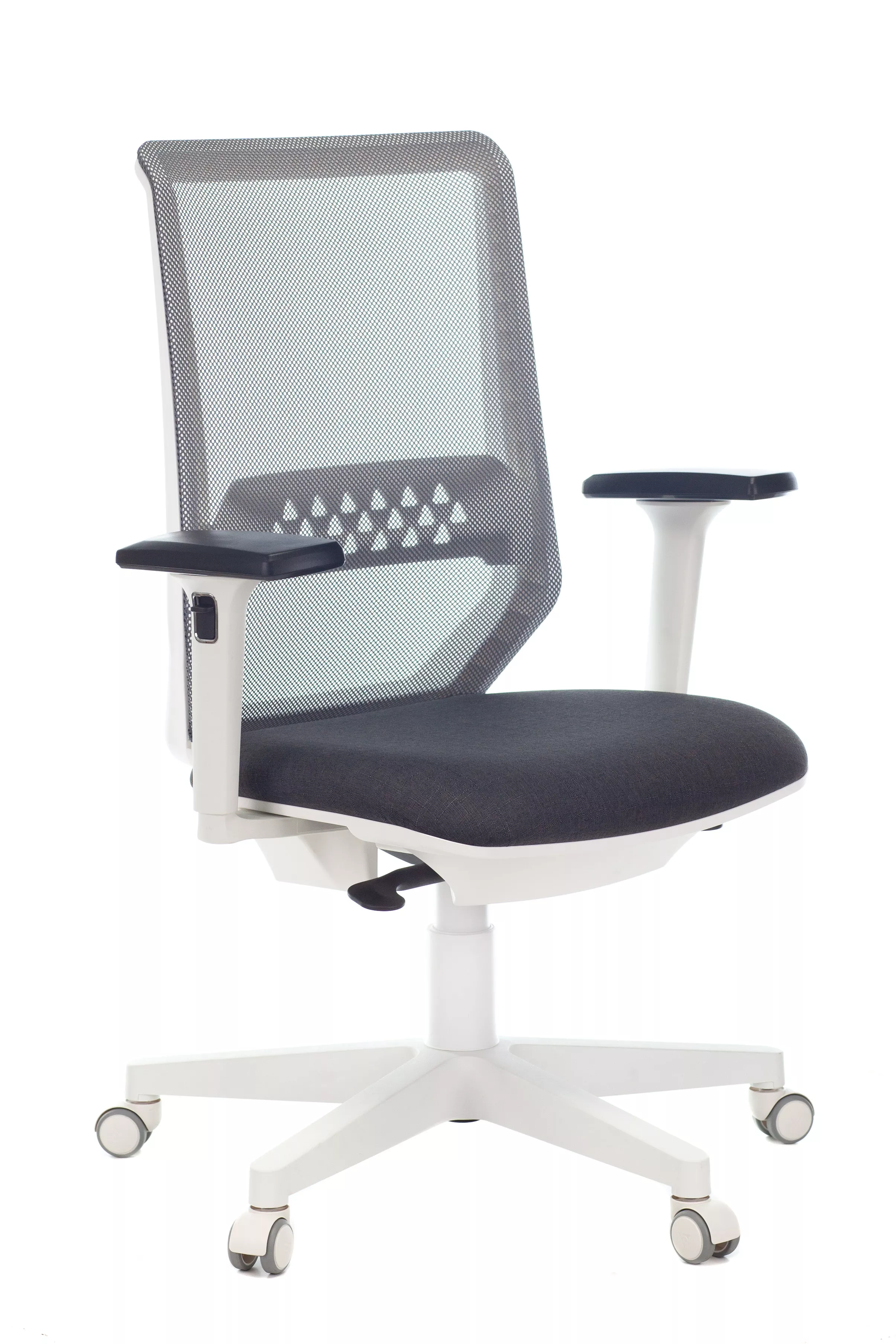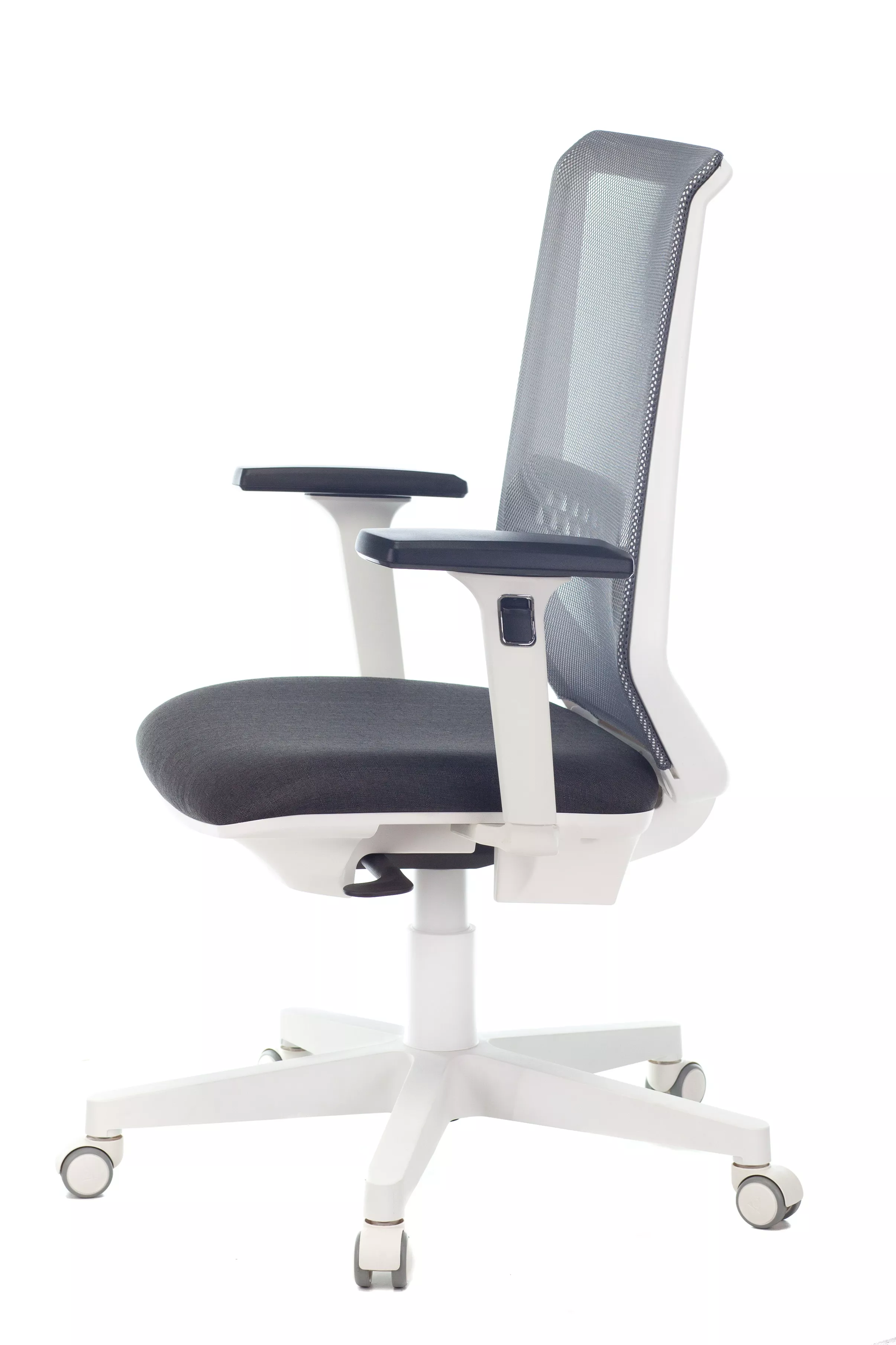 Подлокотники 3D обеспечивают возможность регулировки по высоте, ширине и углу наклона, что дополнительно улучшает эргономику. Высота кресла регулируется с помощью газлифта, что делает его подходящим для пользователей разного роста. Белая пластиковая крестовина придает креслу стильный вид и хорошую устойчивость, а колеса, предназначенные для паркета и ламината, обеспечивают легкость перемещения.
