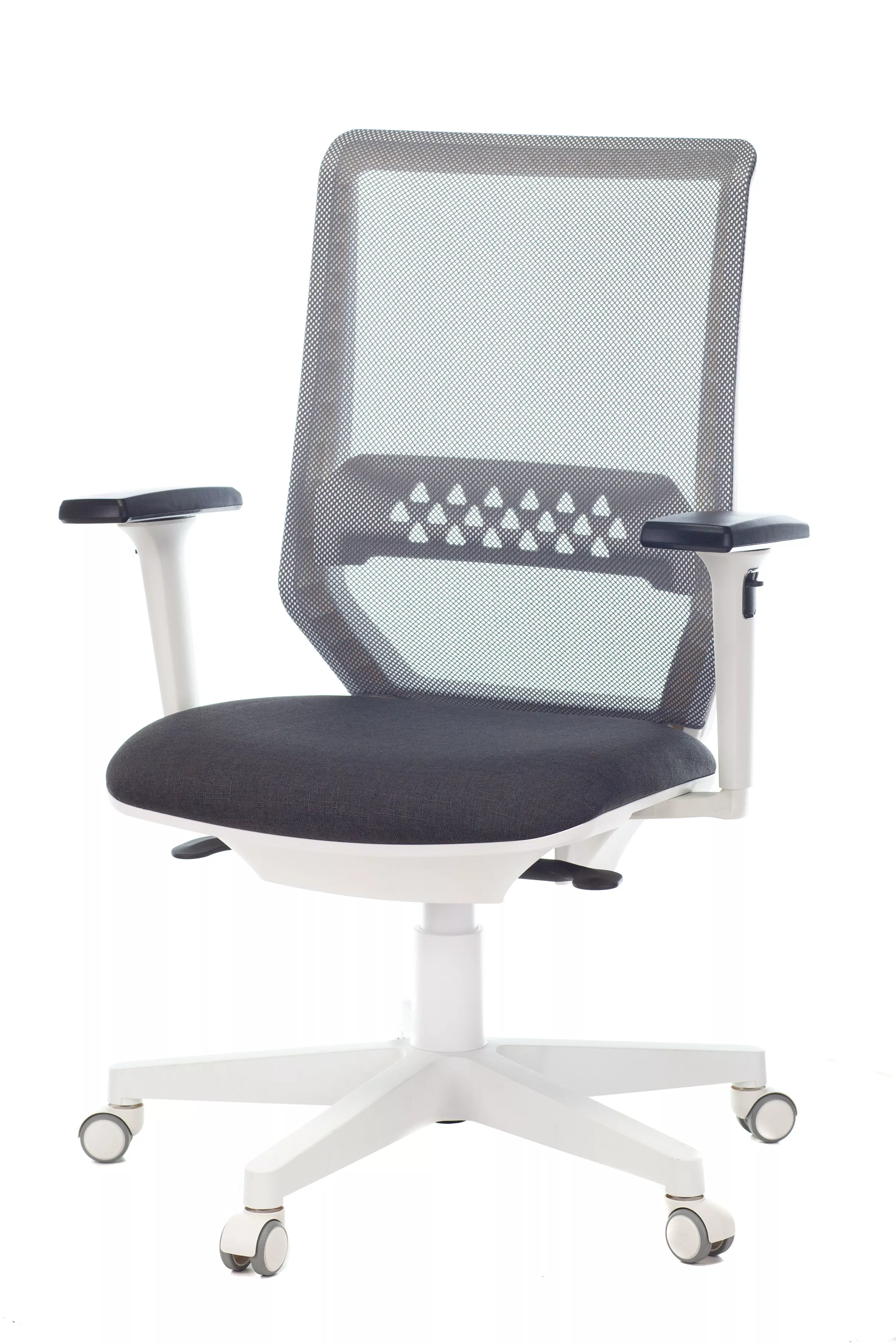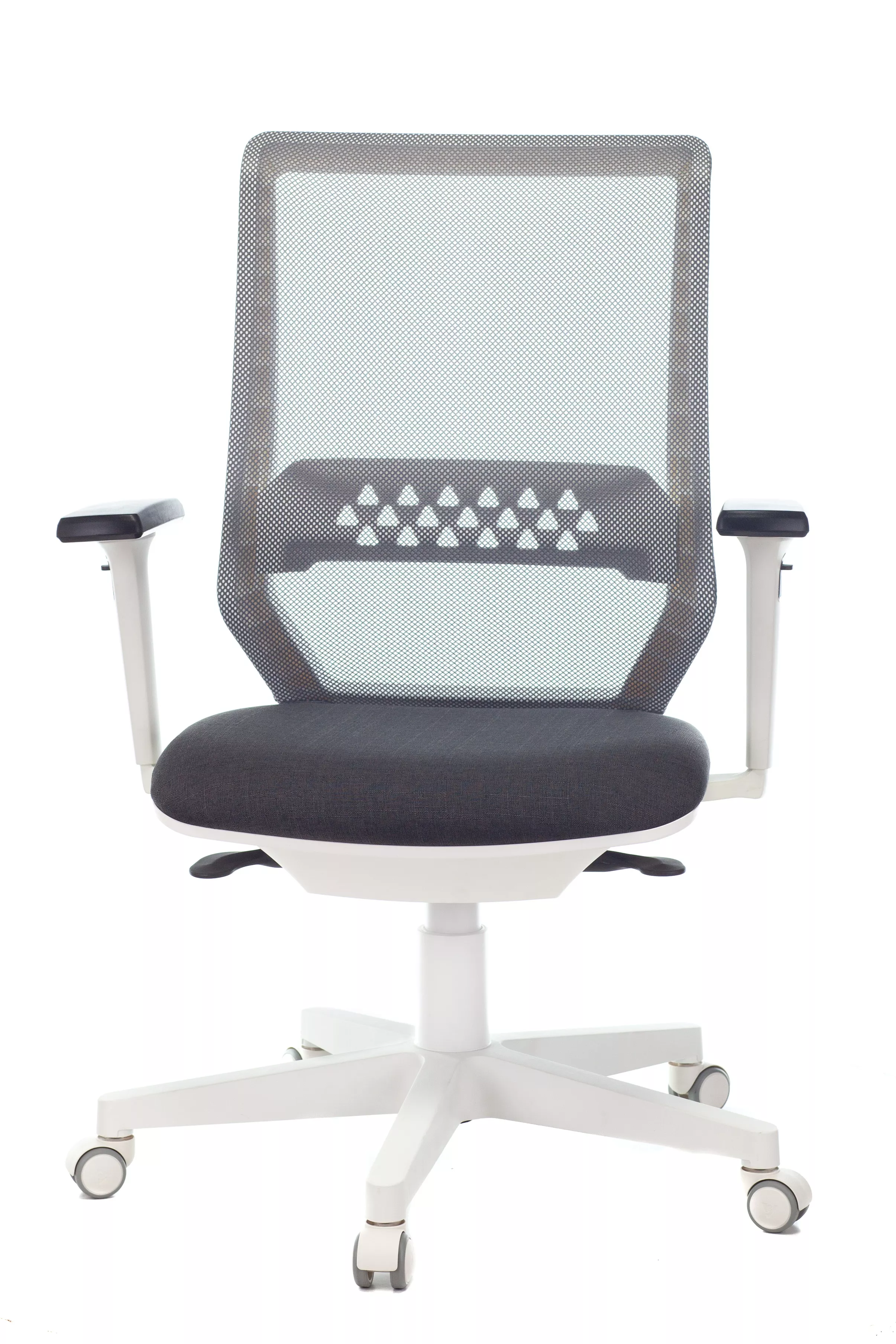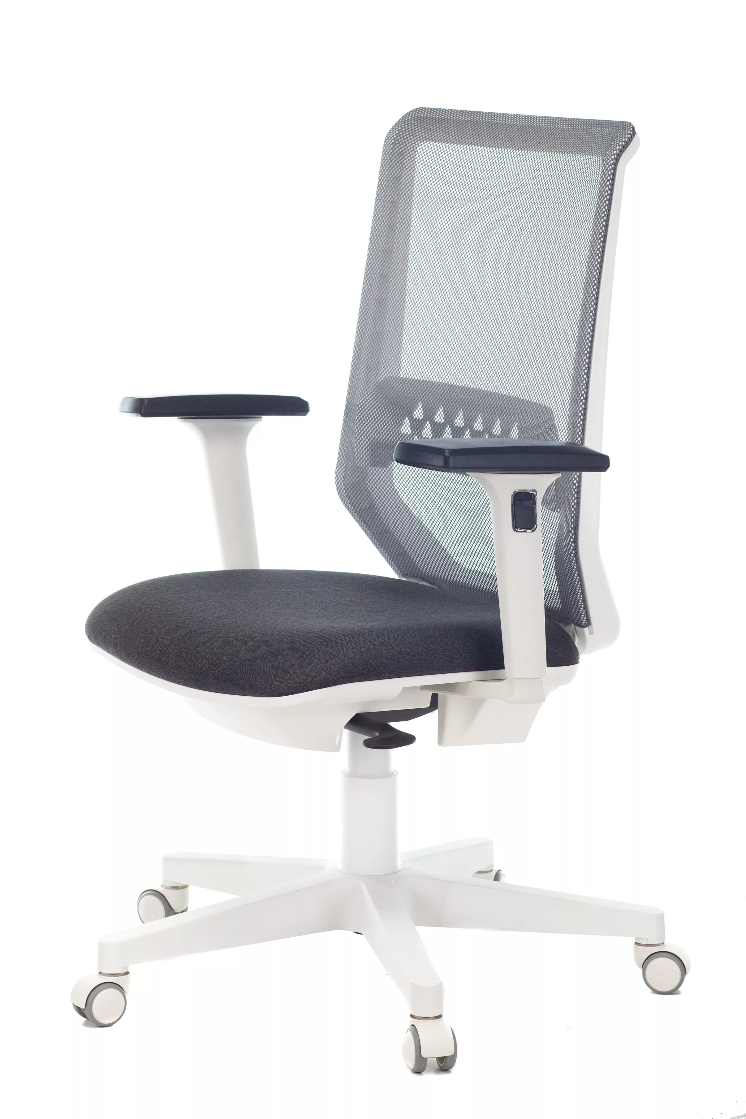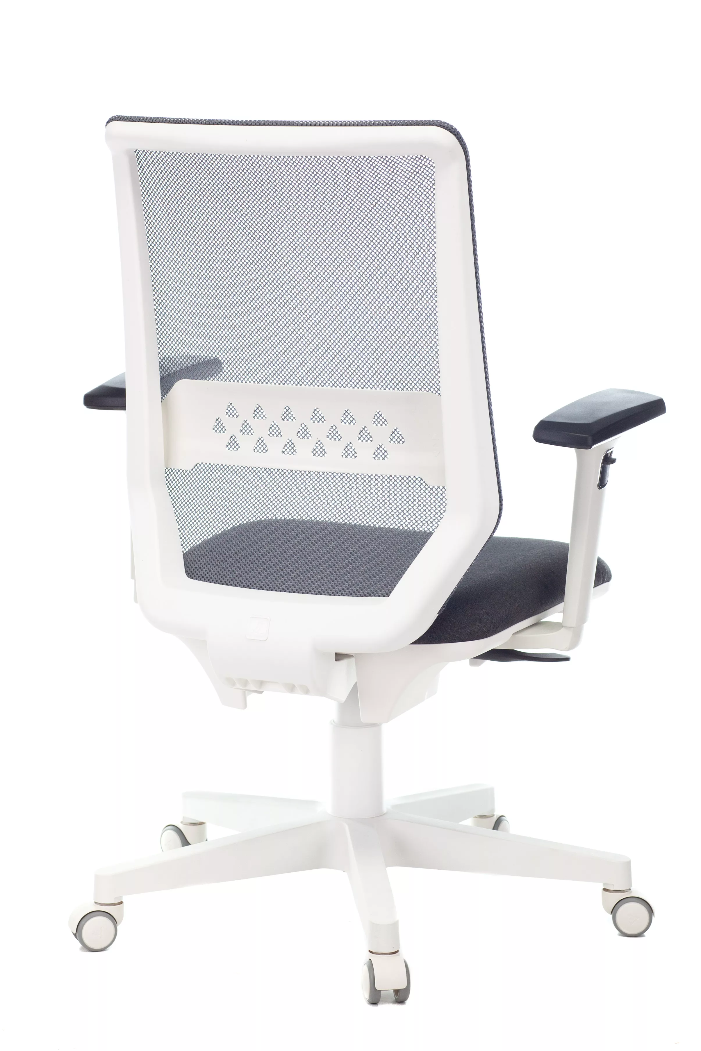 Подлокотники 3D обеспечивают возможность регулировки по высоте, ширине и углу наклона, что дополнительно улучшает эргономику. Высота кресла регулируется с помощью газлифта, что делает его подходящим для пользователей разного роста. Белая пластиковая крестовина придает креслу стильный вид и хорошую устойчивость, а колеса, предназначенные для паркета и ламината, обеспечивают легкость перемещения.