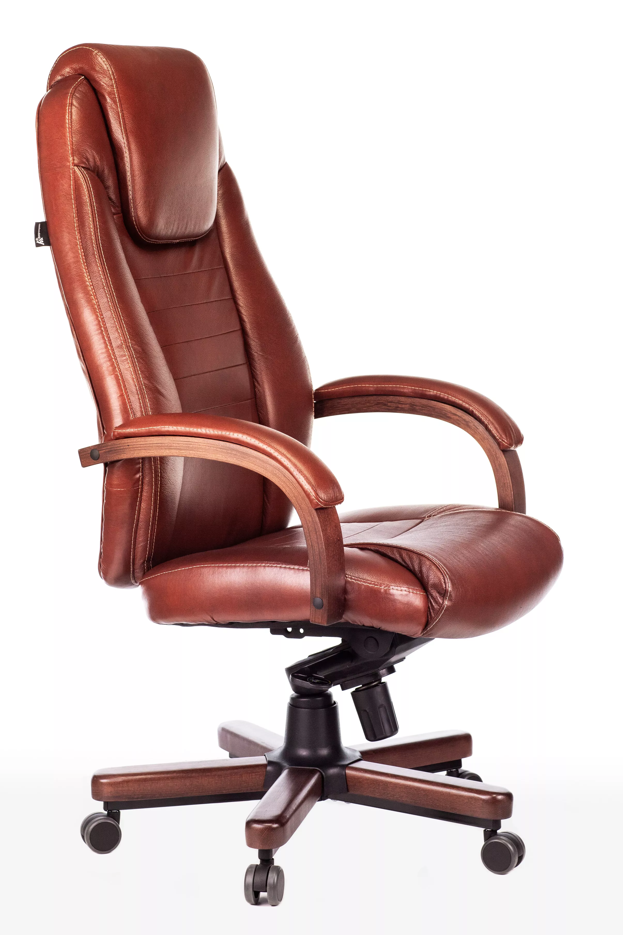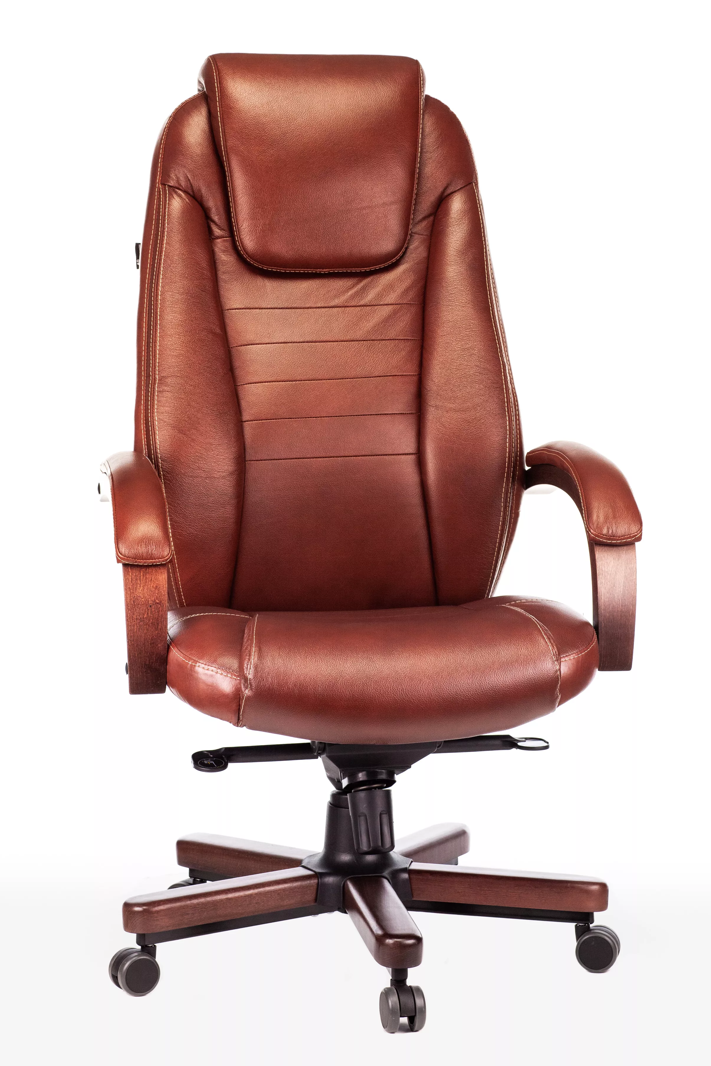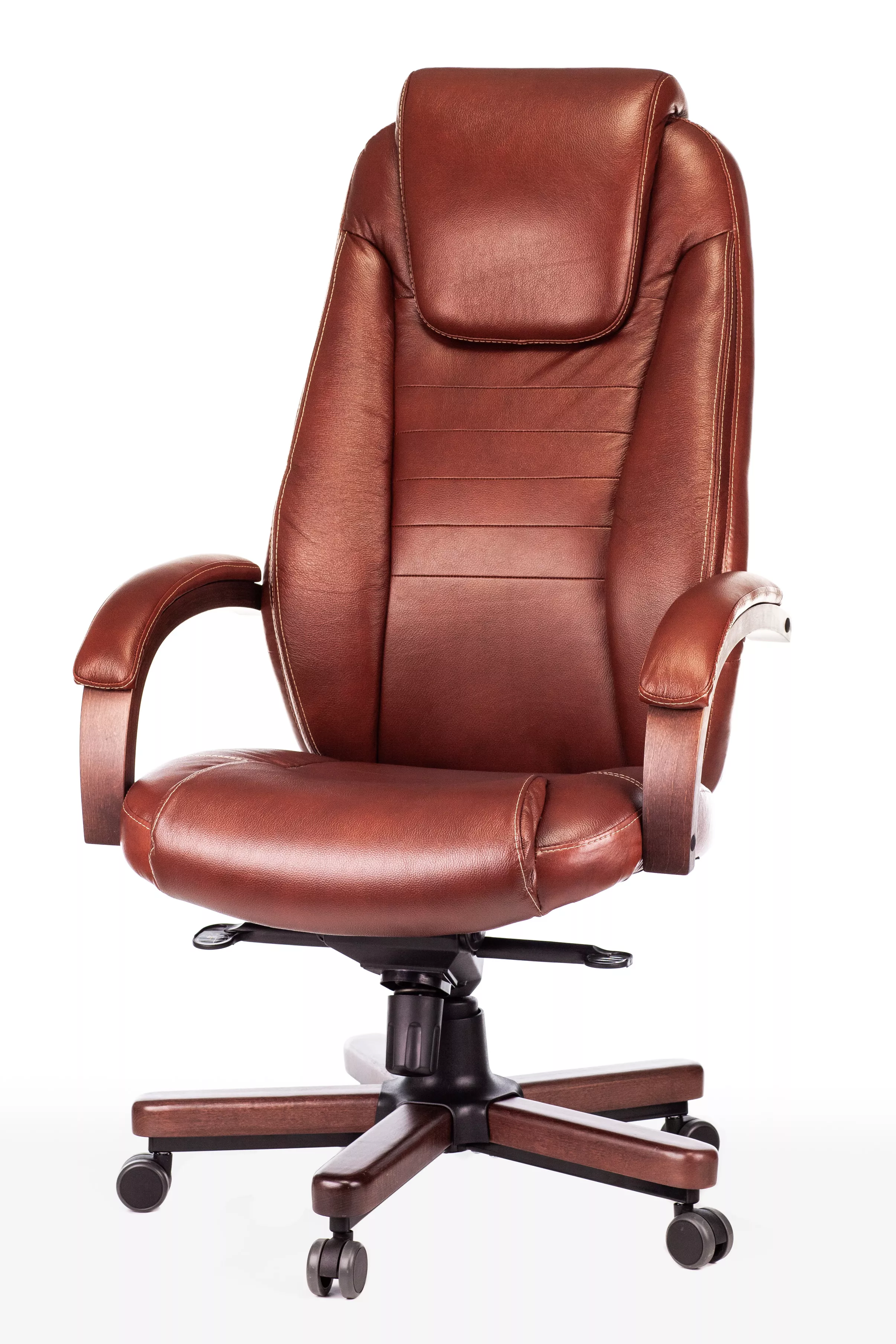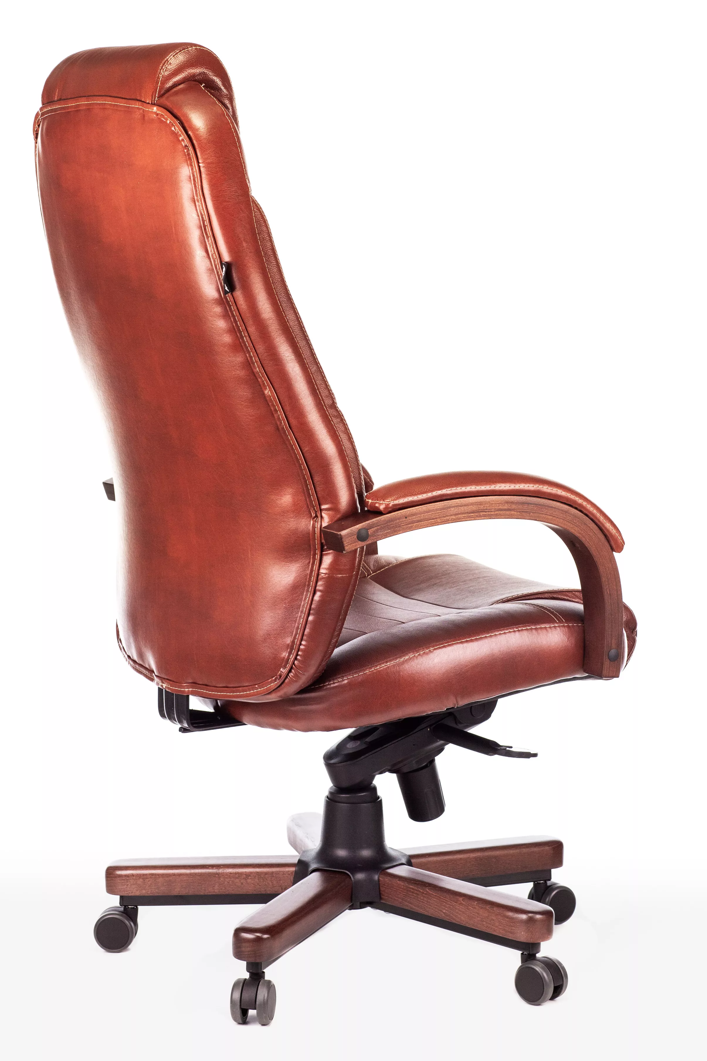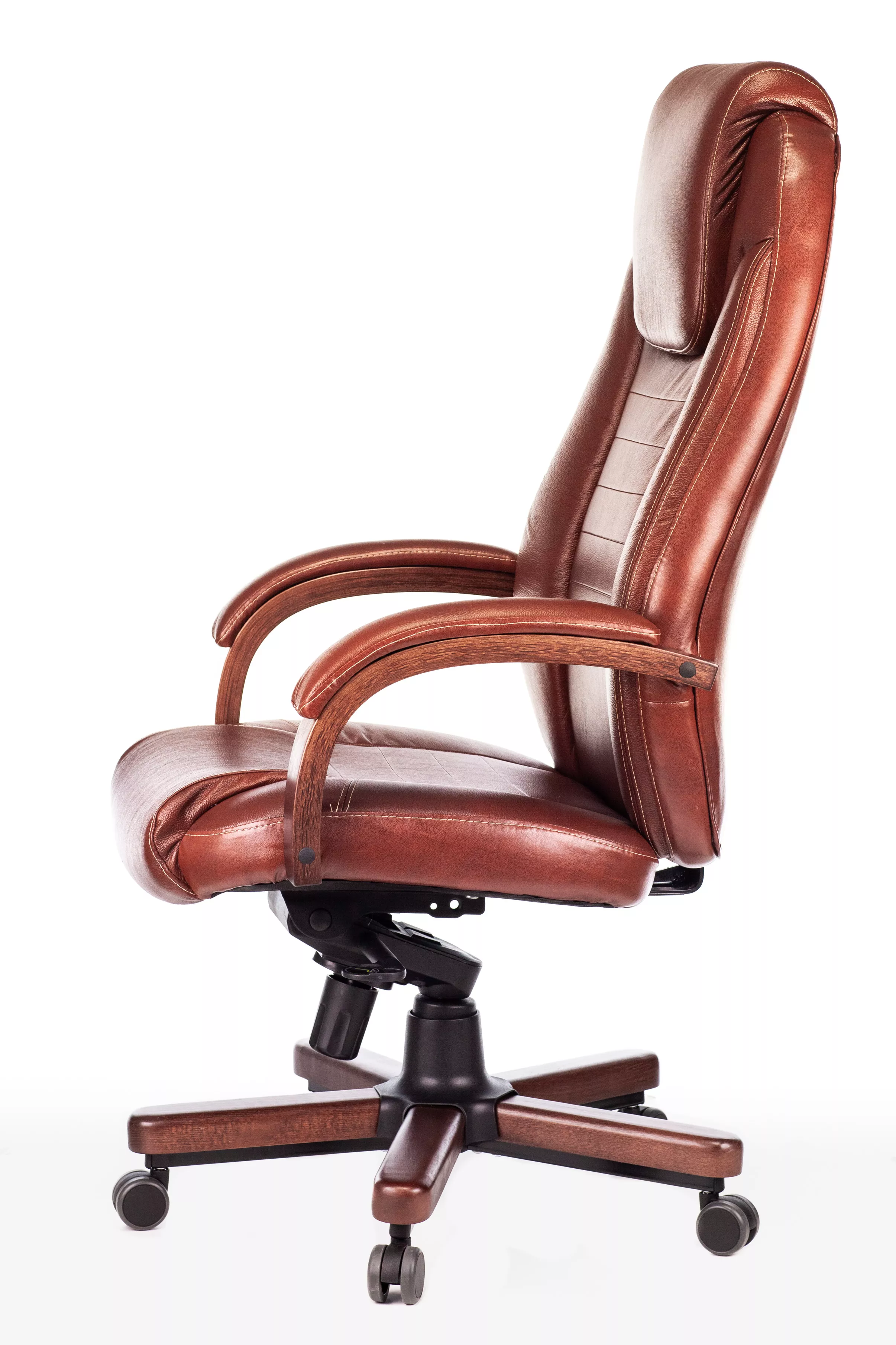 Наполнитель кресла выполнен из эластичного высокоупругого поролона, который обеспечивает мягкость и комфорт при сидении. Подлокотники кресла выполнены из дерева в цвете "темный орех" и имеют мягкие накладки из натуральной кожи на лицевых частях, что добавляет дополнительный комфорт.