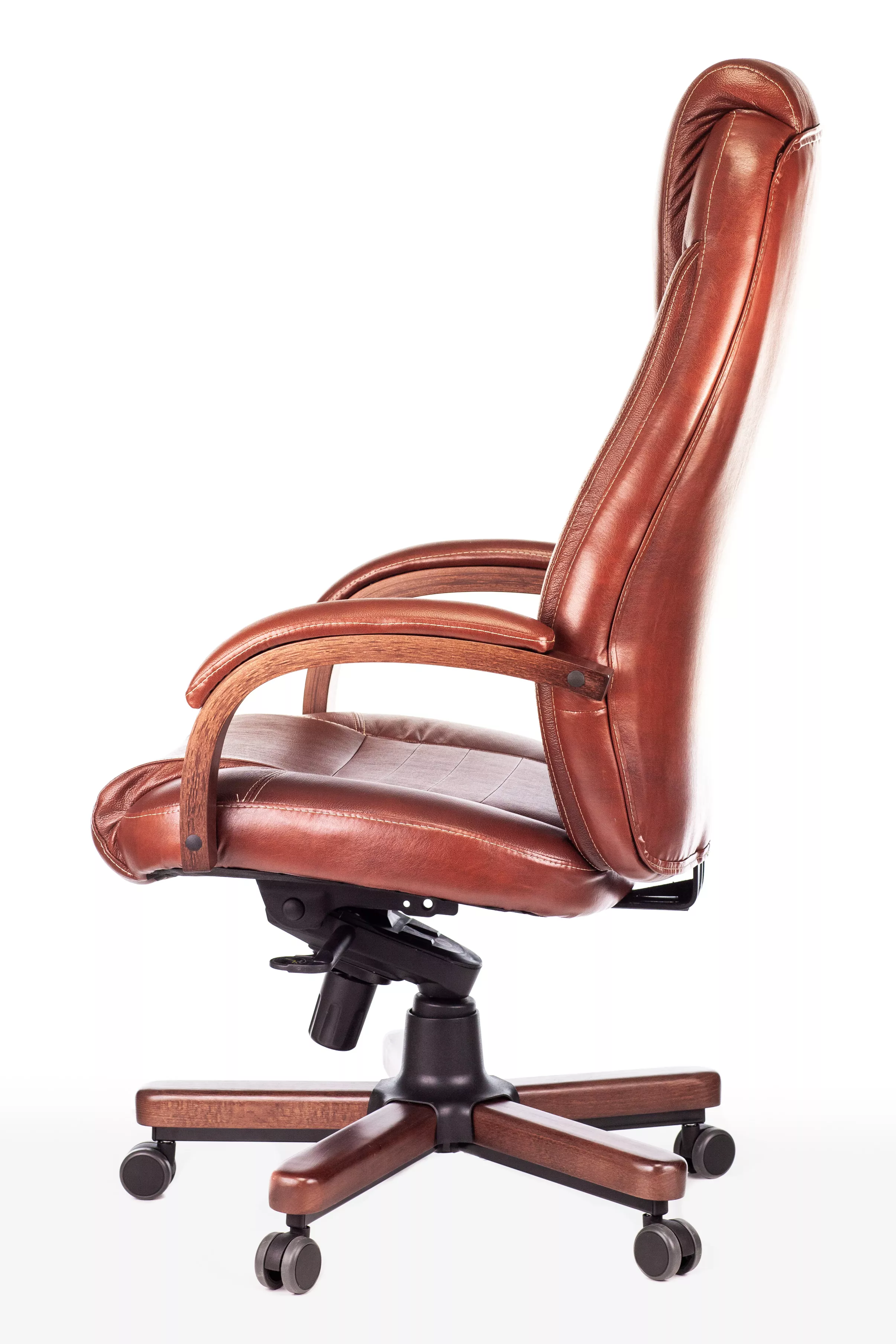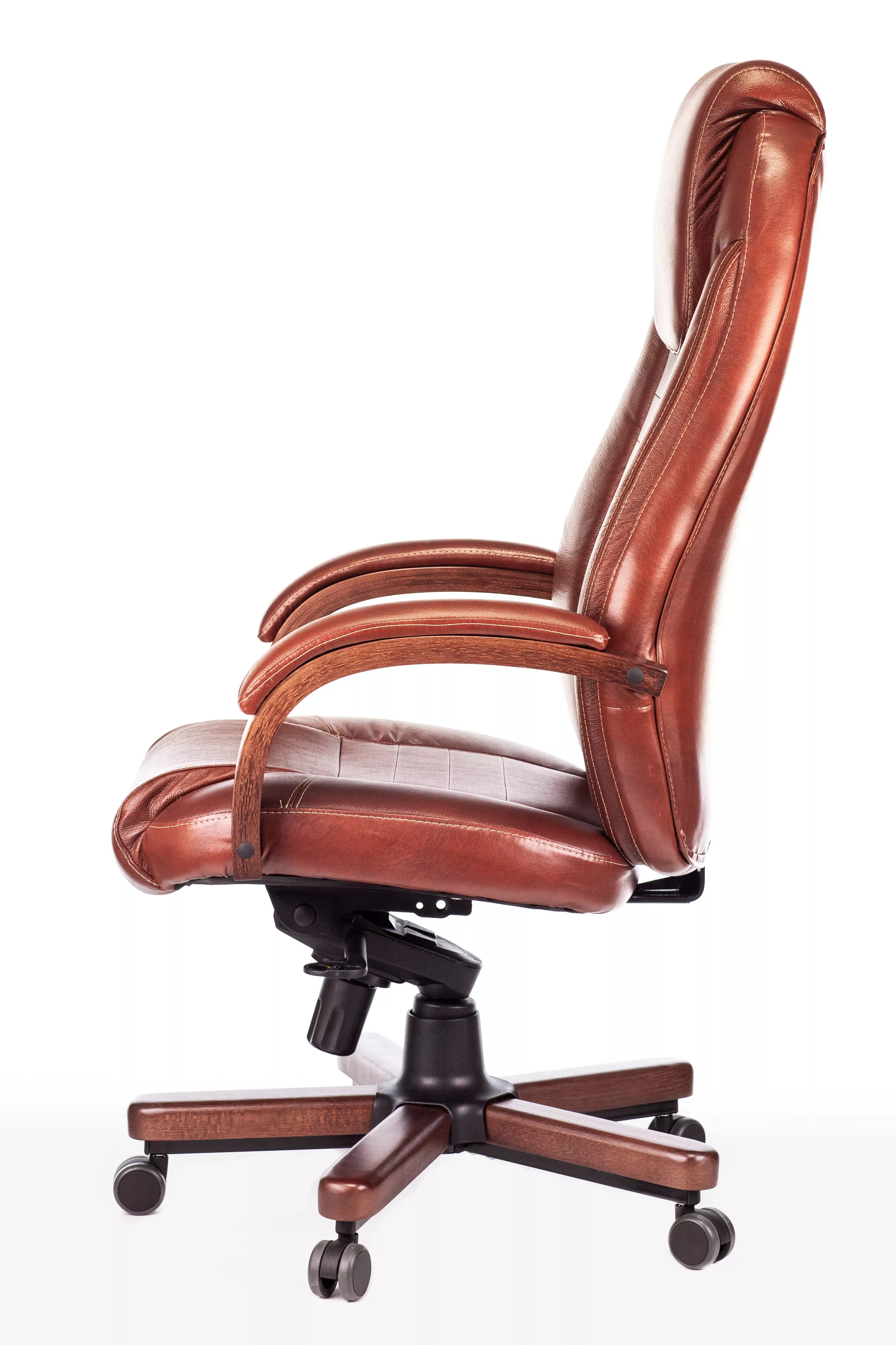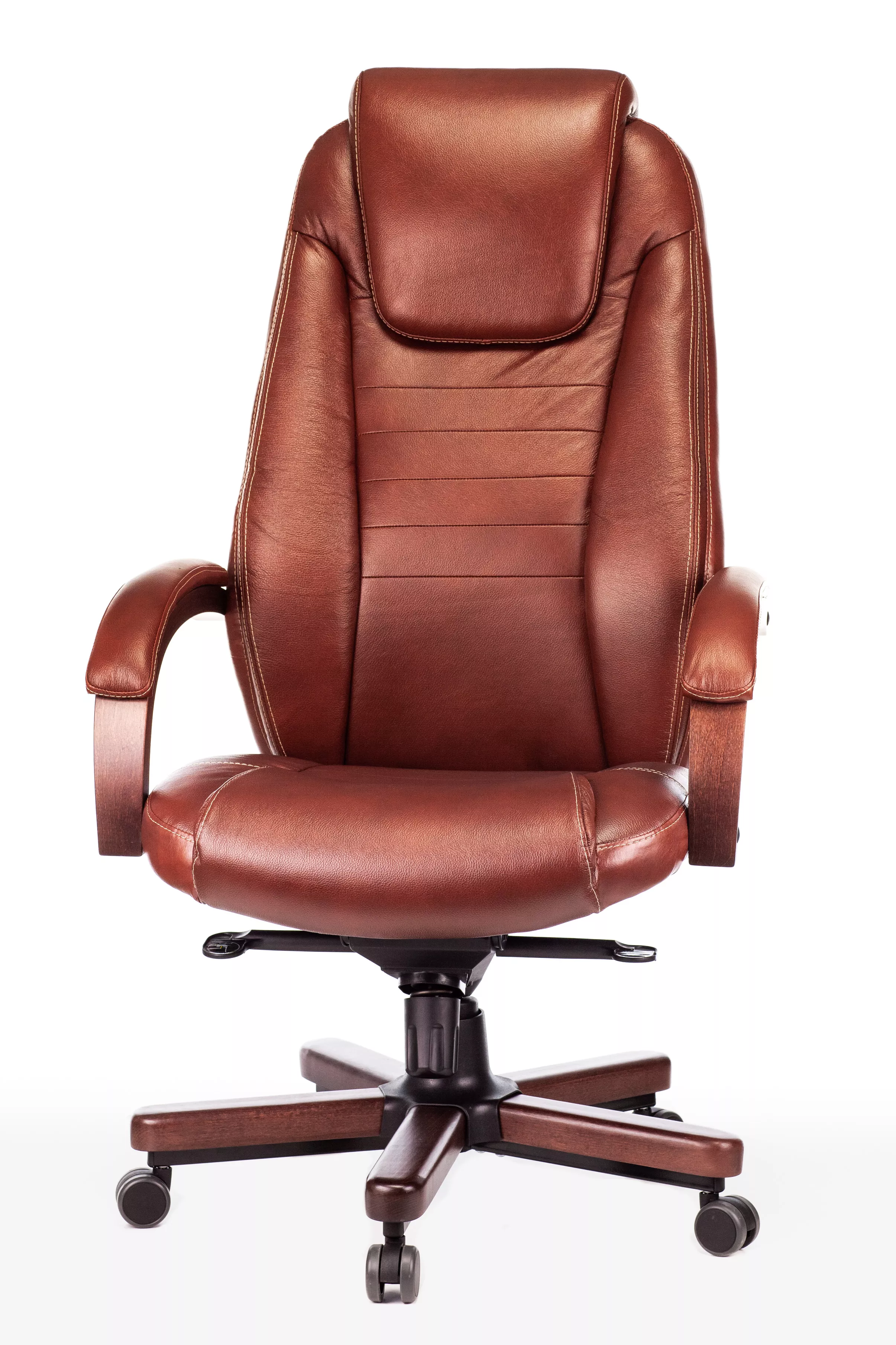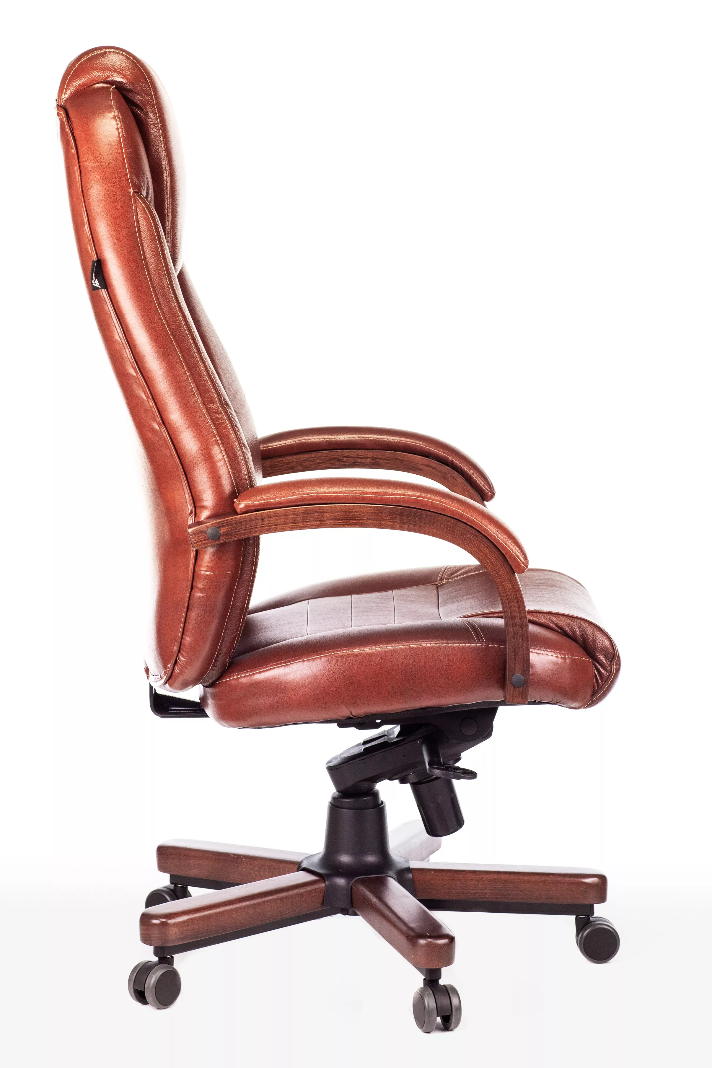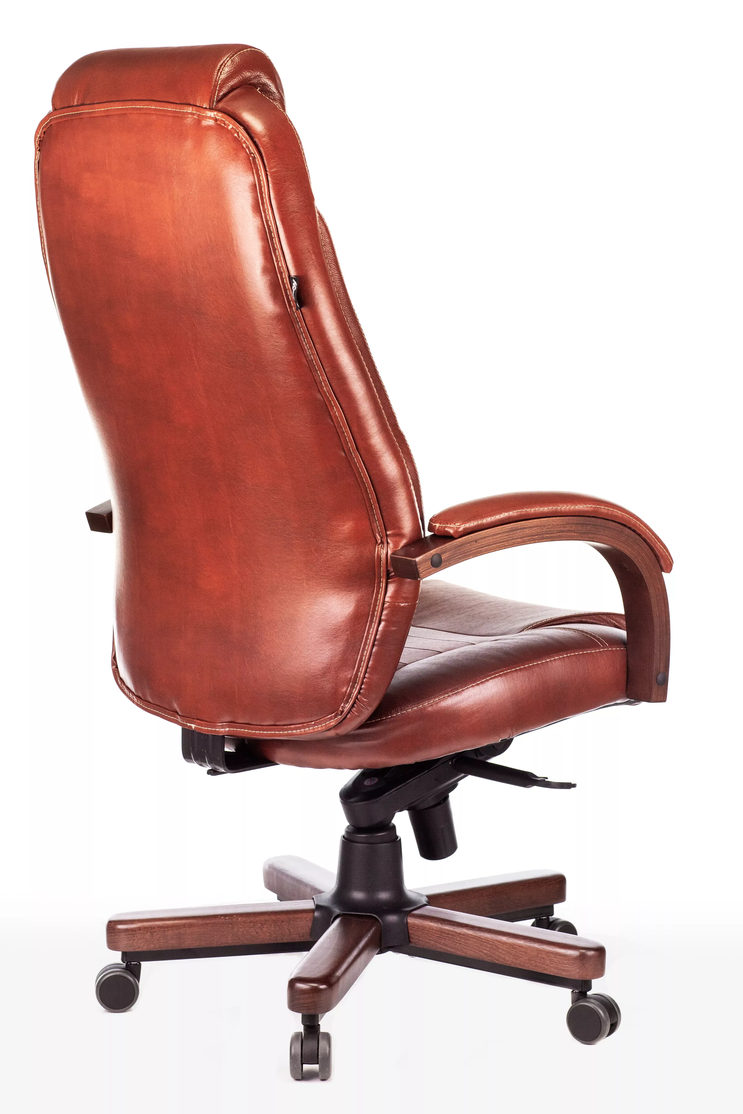 Наполнитель кресла выполнен из эластичного высокоупругого поролона, который обеспечивает мягкость и комфорт при сидении. Подлокотники кресла выполнены из дерева в цвете "темный орех" и имеют мягкие накладки из натуральной кожи на лицевых частях, что добавляет дополнительный комфорт.