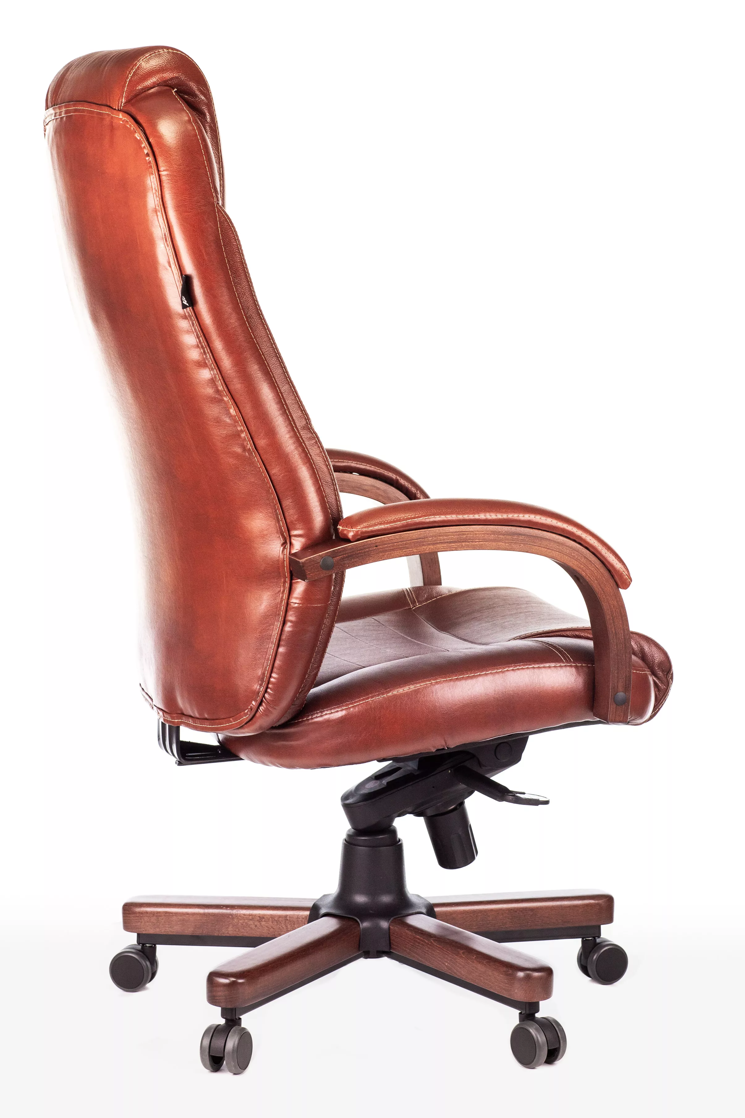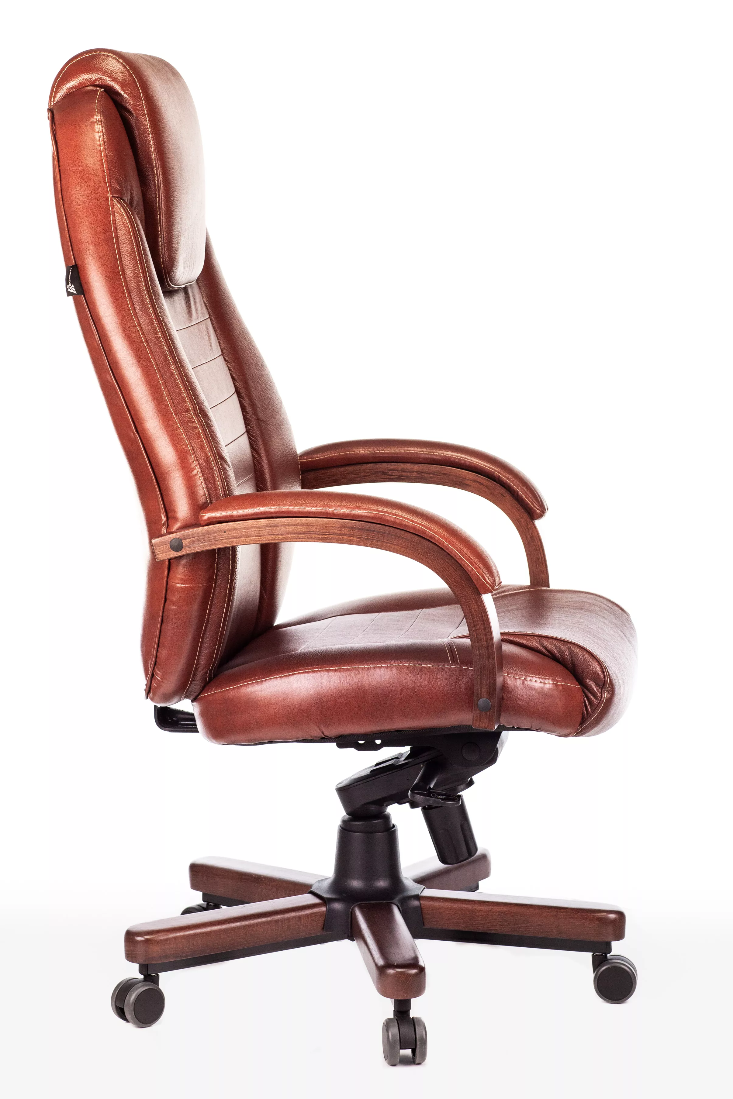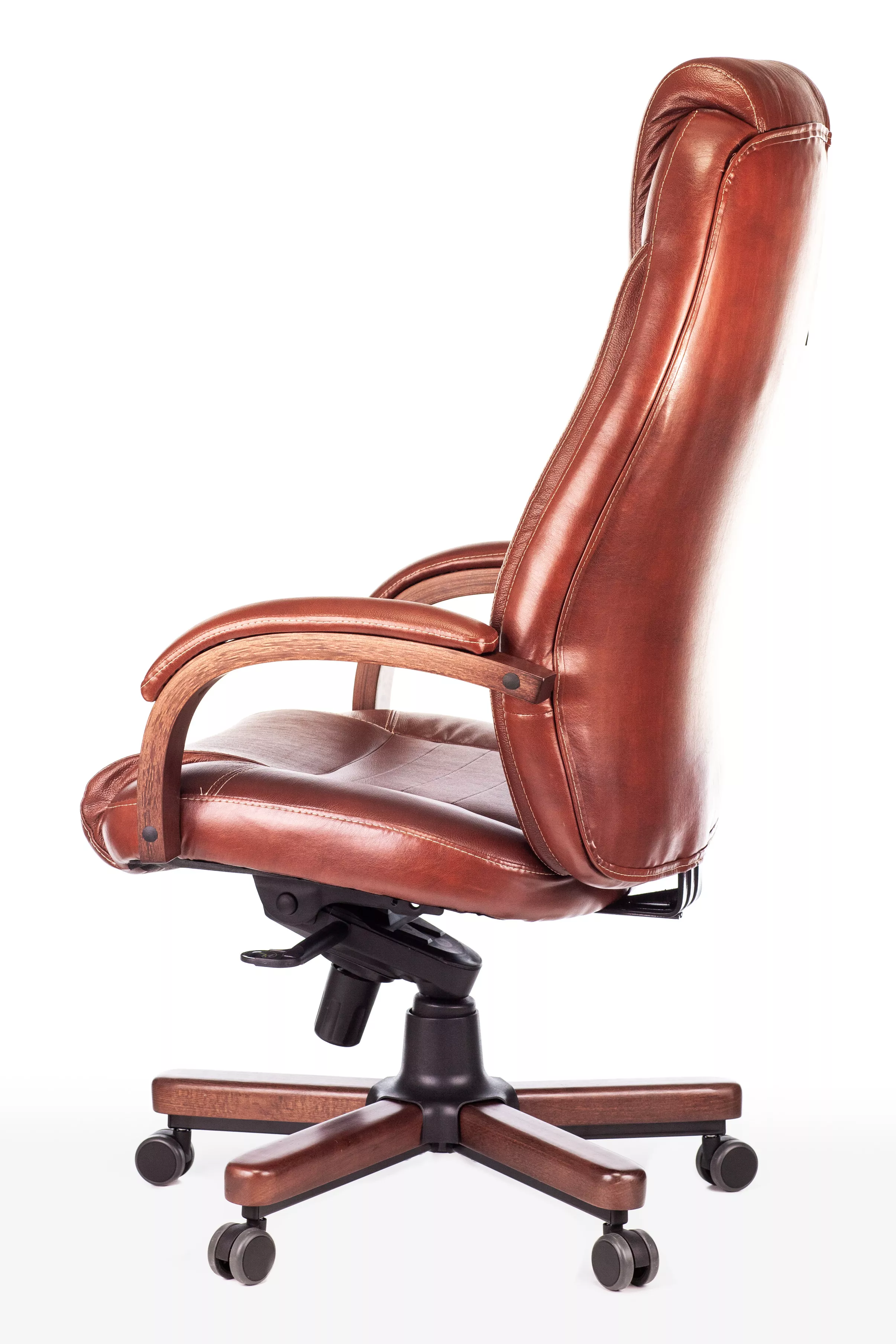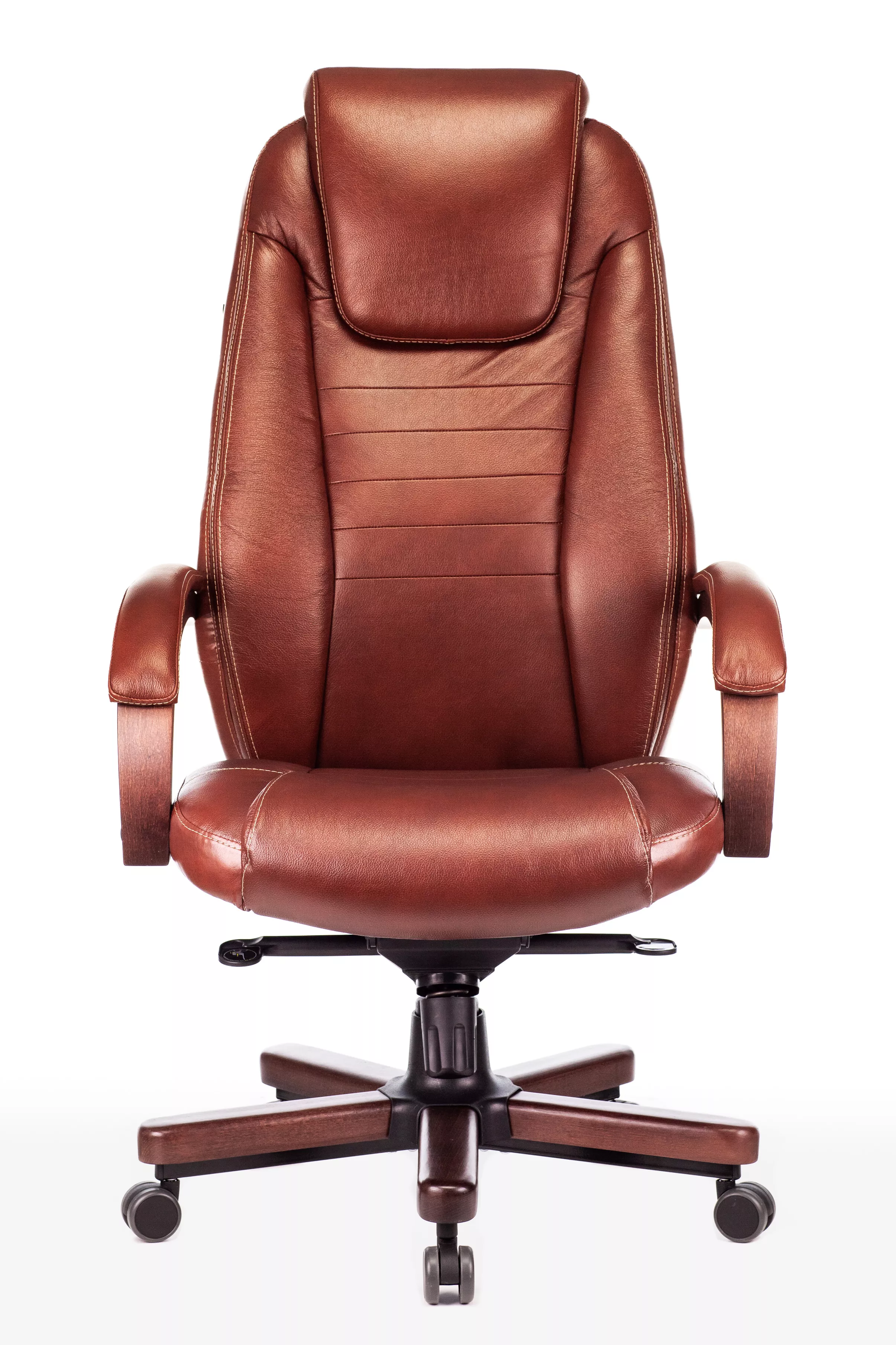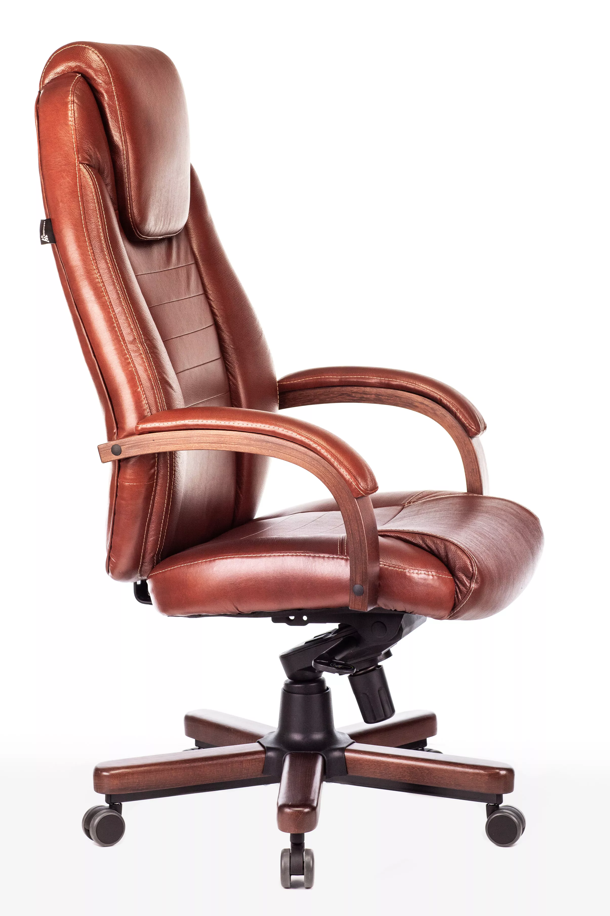 Наполнитель кресла выполнен из эластичного высокоупругого поролона, который обеспечивает мягкость и комфорт при сидении. Подлокотники кресла выполнены из дерева в цвете "темный орех" и имеют мягкие накладки из натуральной кожи на лицевых частях, что добавляет дополнительный комфорт.
