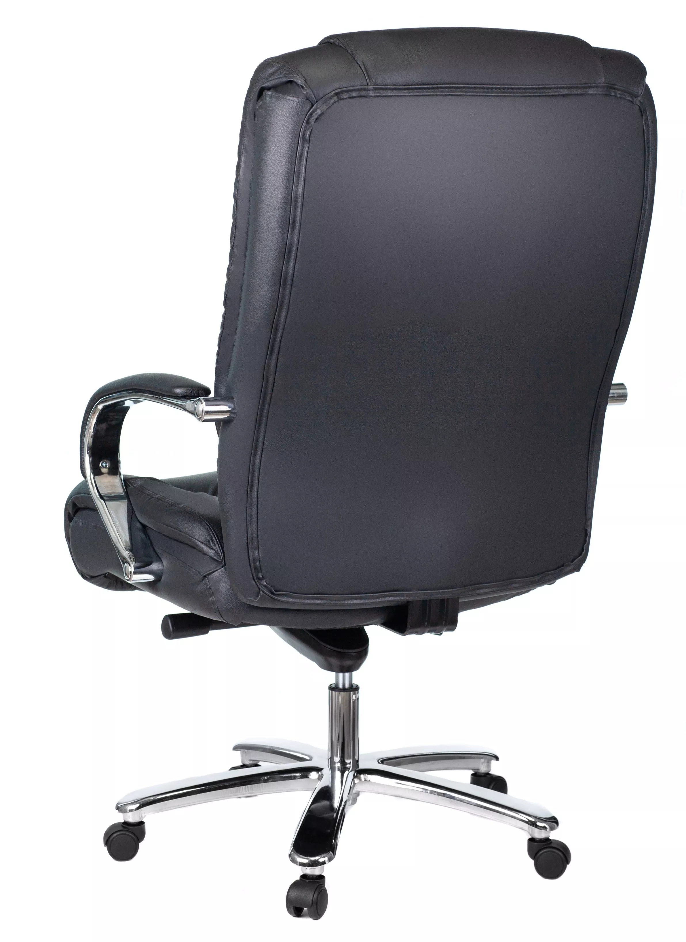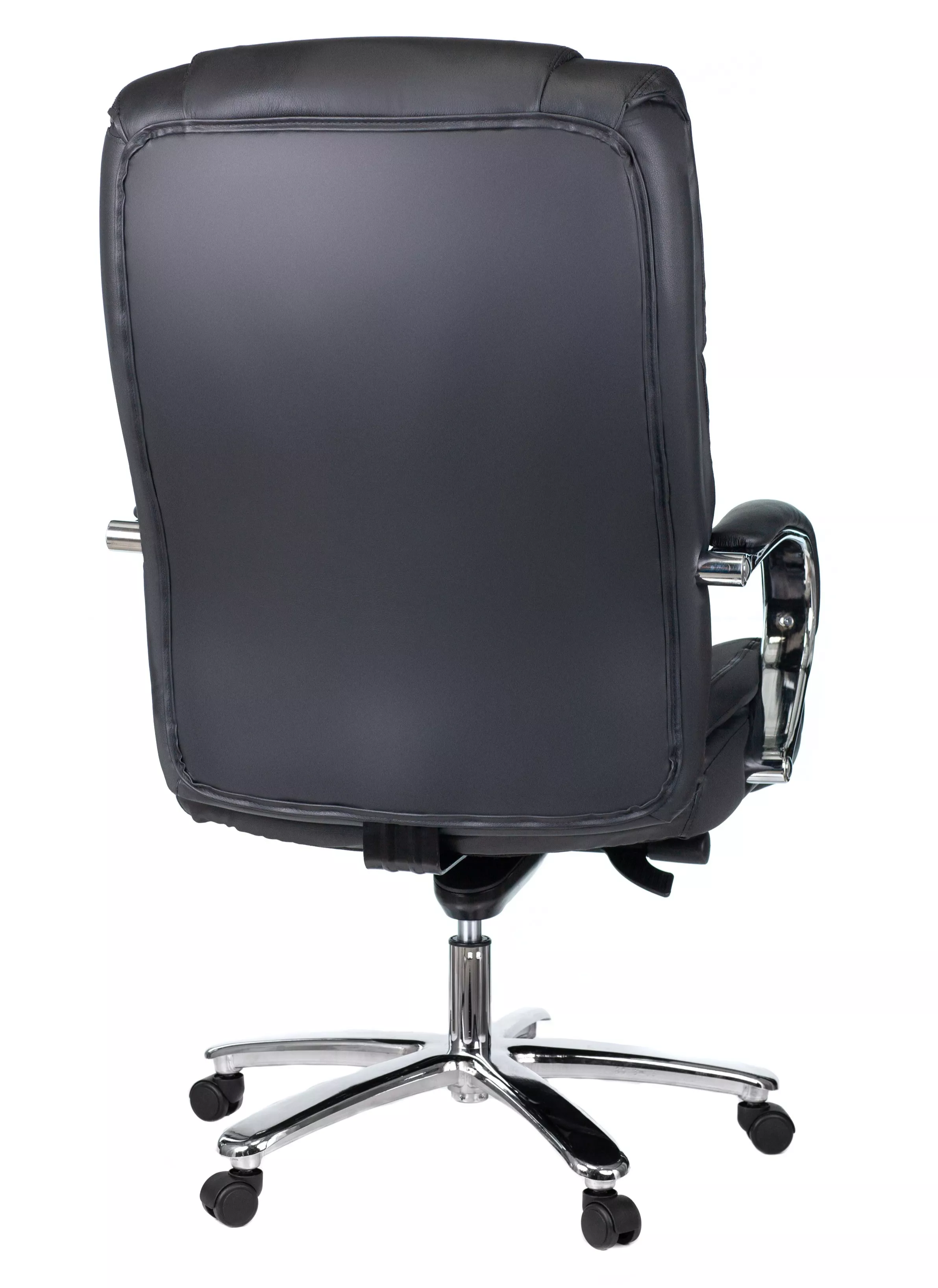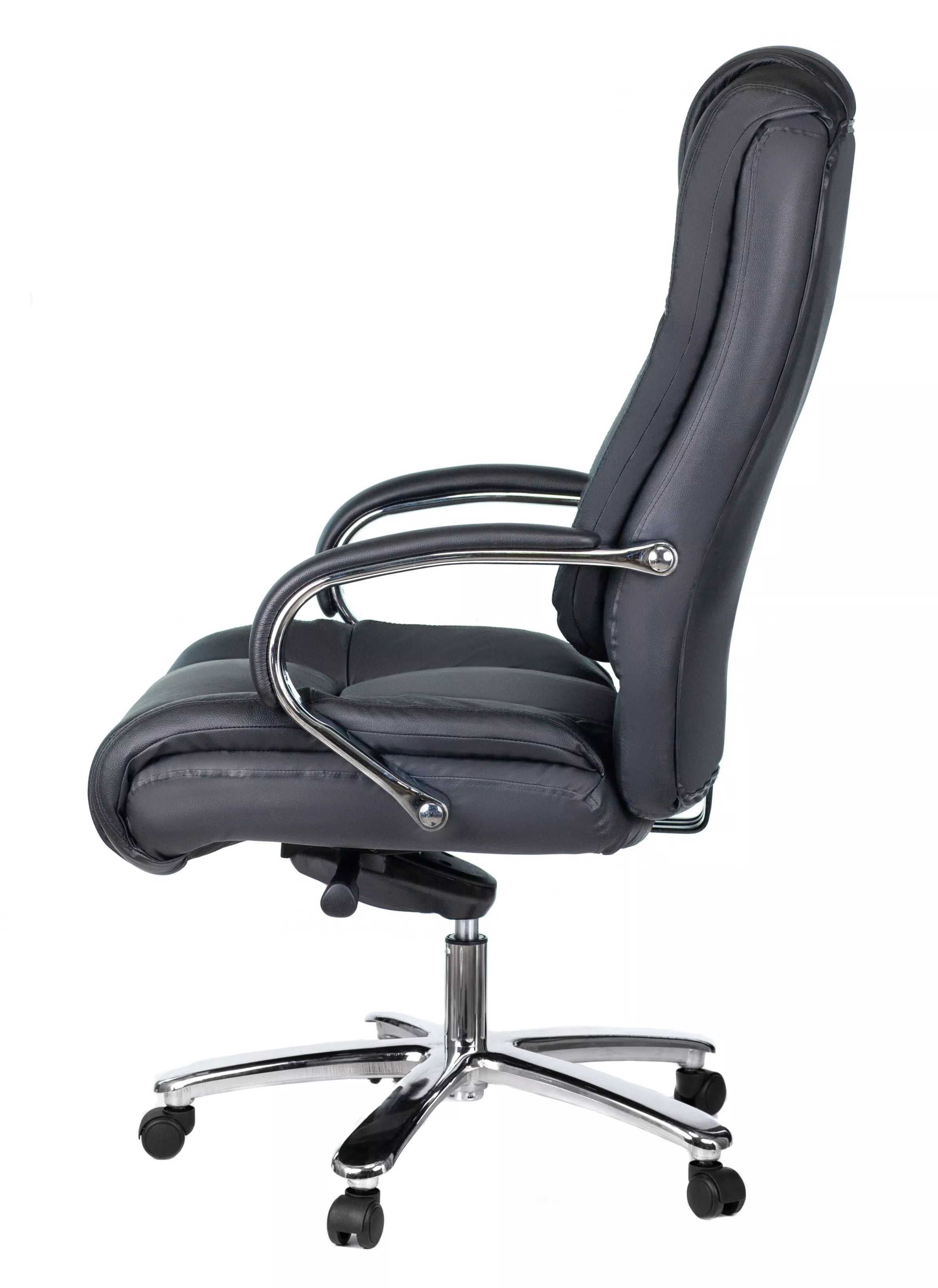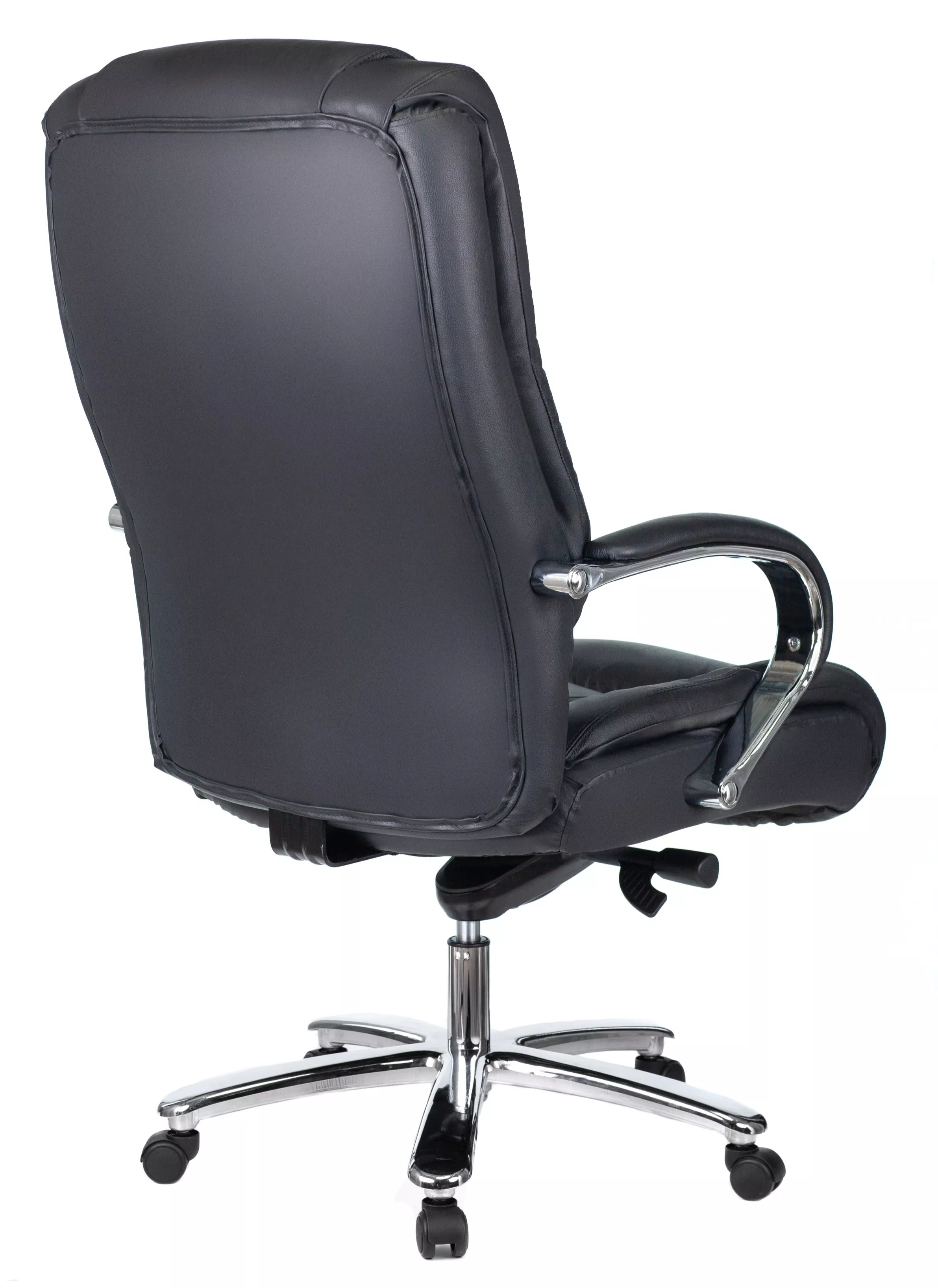 Кресло изготовлено из высококачественной экокожи черного цвета, которая отличается прочностью, гибкостью и долговечностью. Внешнее покрытие выглядит презентабельно и не поддается загрязнениям. Пластиковые колеса подходят для любого покрытия. Они не поцарапают ламинат, линолеум или паркет. Зафикси...