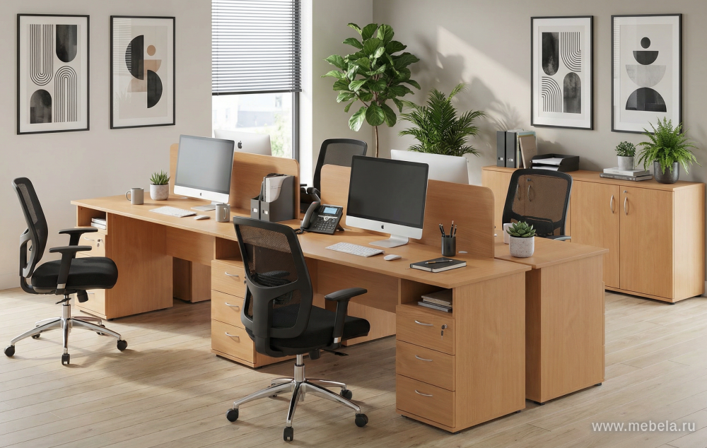 Аскетичность линий и природные мотивы в цветовой гамме – вот главные отличительные особенности мебели для офиса из гарнитура Эко. Внешняя простота не сказывается отрицательно на функциональных возможностях. Модульная структура элементов позволяет собирать из них рабочие места любой сложности.